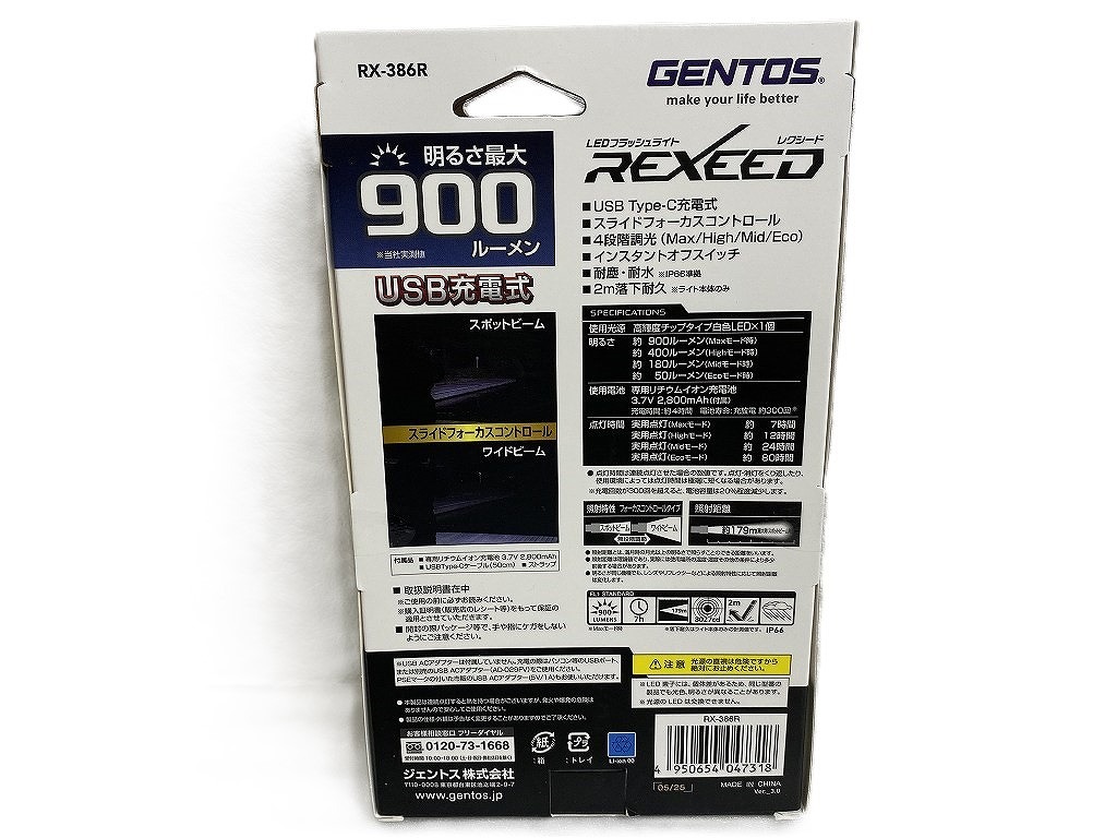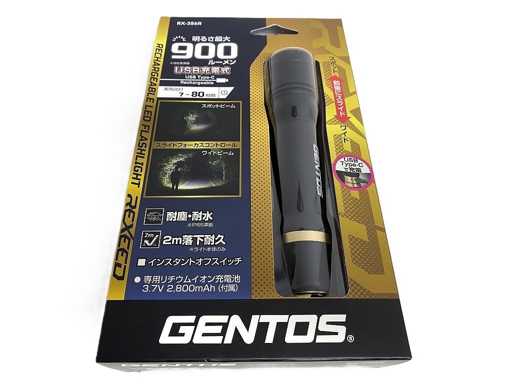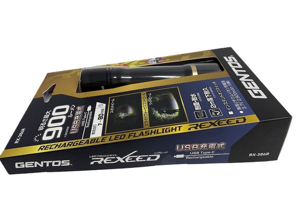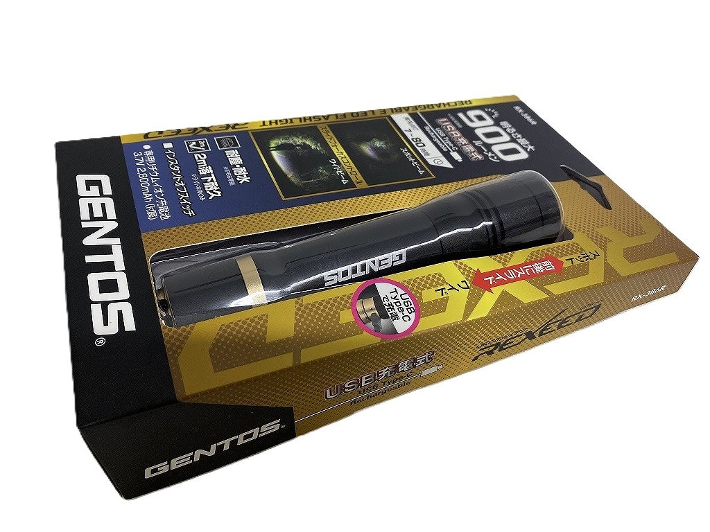 【未使用】 ジェントス GENTOS USB充電式 ハンディライト LEDフラッシュライト 懐中電灯 900ルーメント 耐水 防災 ブラック