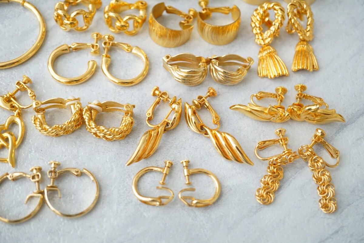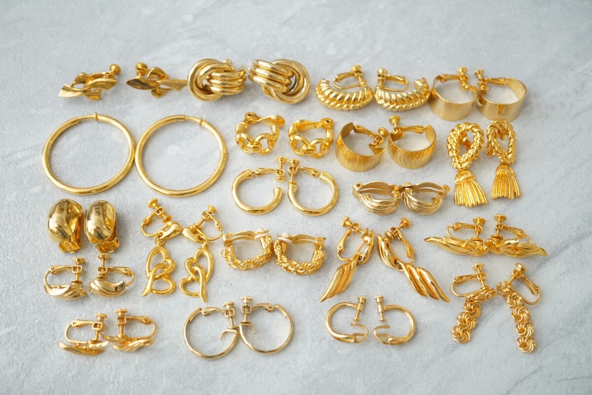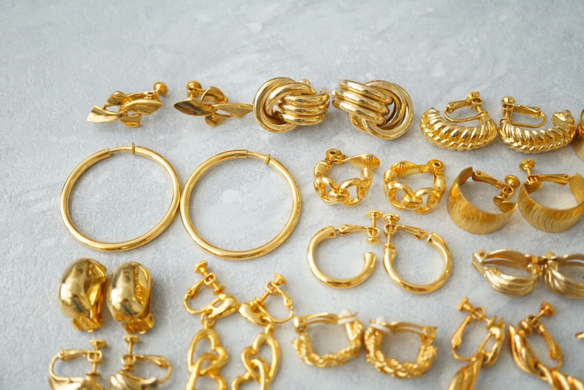 C187 ゴールドカラー 海外製など イヤリング 両耳揃い 20点セット ヴィンテージ アクセサリー 大量 まとめて おまとめ まとめ売り 装飾品