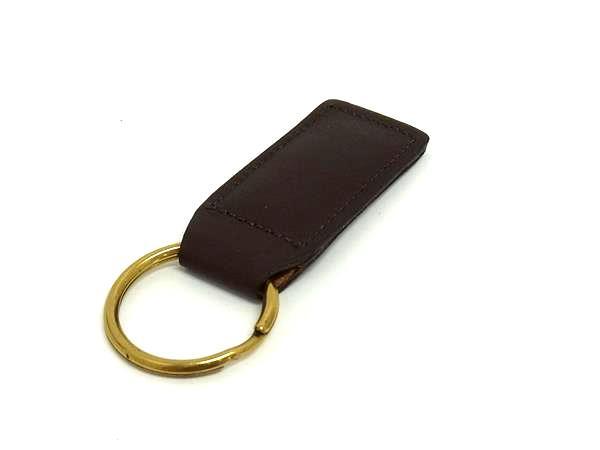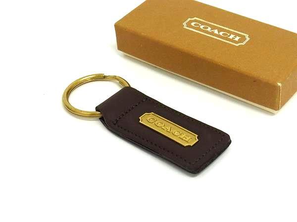 ■美品■ COACH コーチ レザー キーリング キーホルダー バッグチャーム メンズ レディース ブラウン系×ゴールド系 DJ5055
