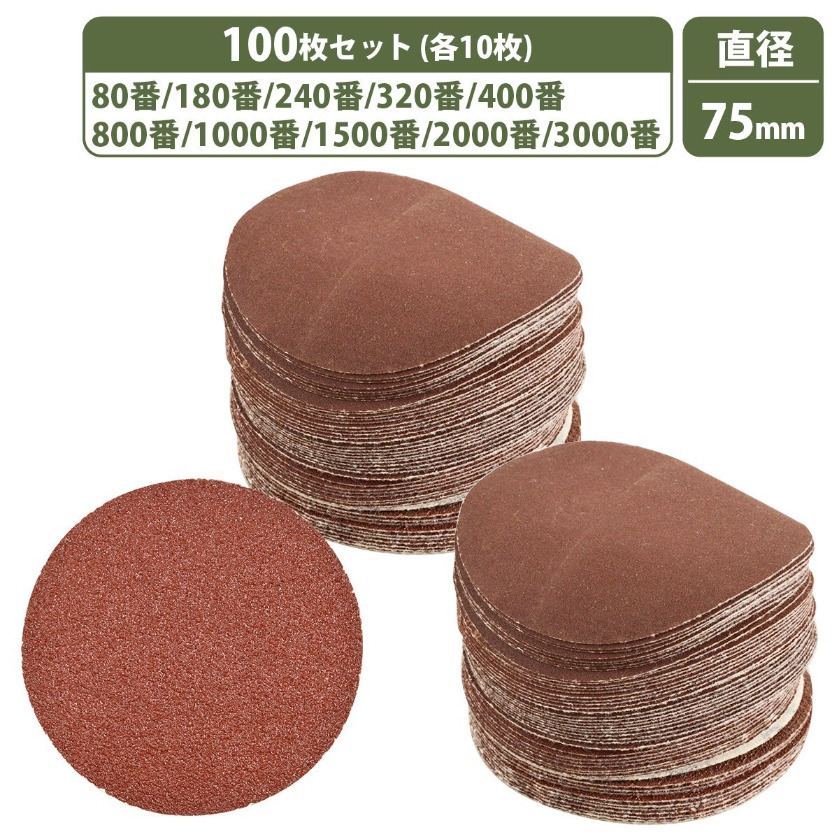 【新品即納】75mm 粗目 細目 10種 100枚セット 80/180/240/320/400/800/1000/1500/2000/3000 ディスクペーパー マジック式 サンドペーパー