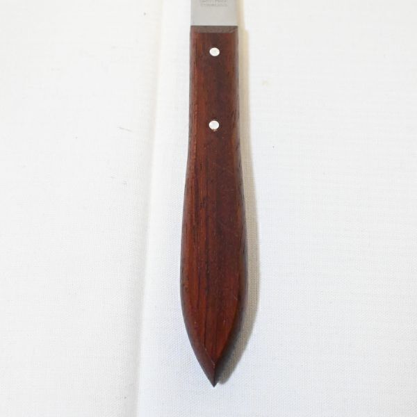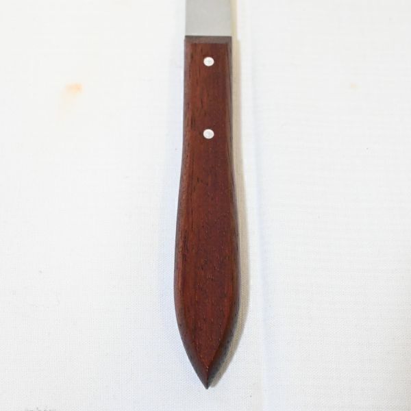 簡易清掃済みです。 柄は木製、刃はステンレス製と思われます。 元箱、ビニール製ケースが付属します。 外観は、柄はさほど使用感はありませんが、 刃はやや傷のようなものが見受けられます。