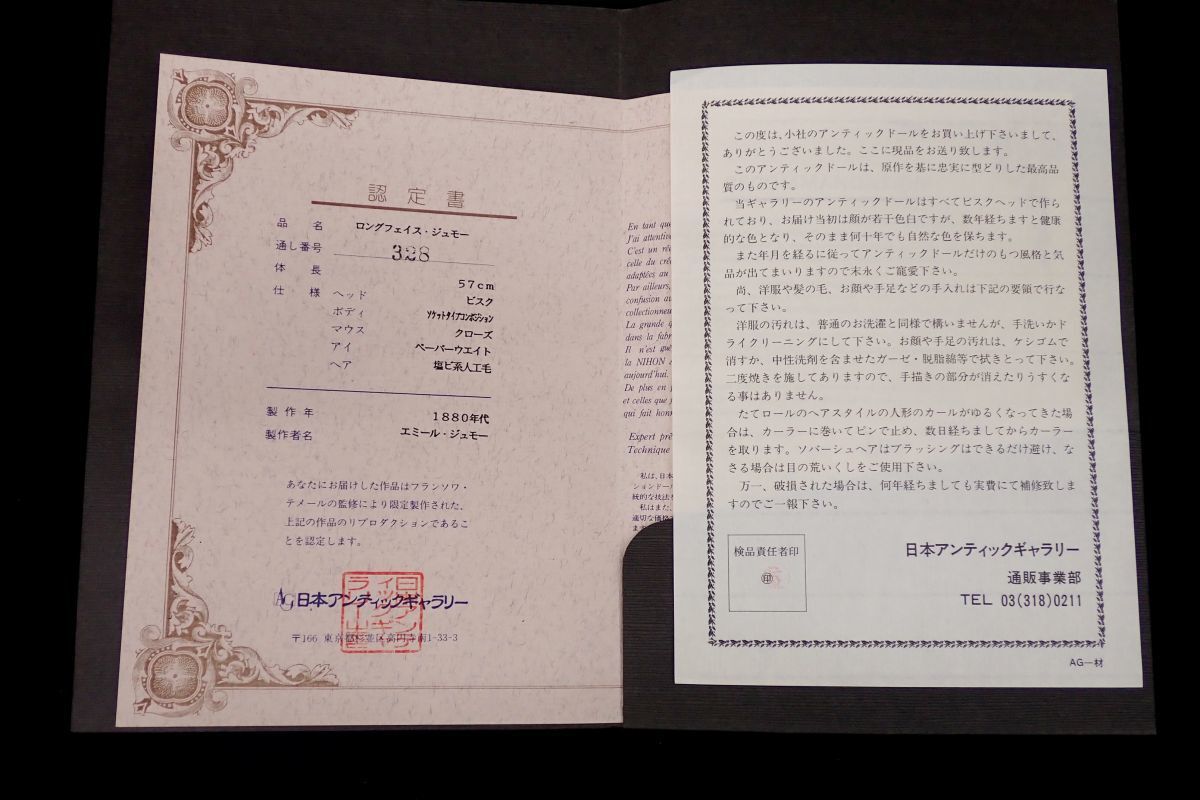 ▲美品 アンティークギャラリー ロングフェイスジュモー 328(高さ約57cm)▲箱付/付属品あり/ビスクドール/認定書付き/消費税0円