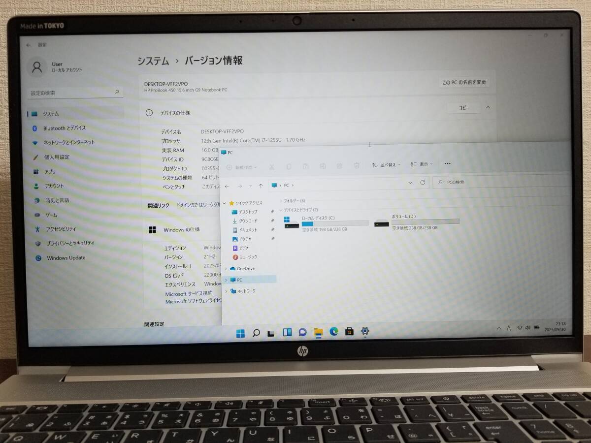 R58 超美品 動作品 HP ProBook 450 G9 Core i7 第12世代 (1255U)◆16GB◆NVMe M.2 SSD512GB◆15.6インチ Full HD Win11 laptop Office 2021 ノートパソコン