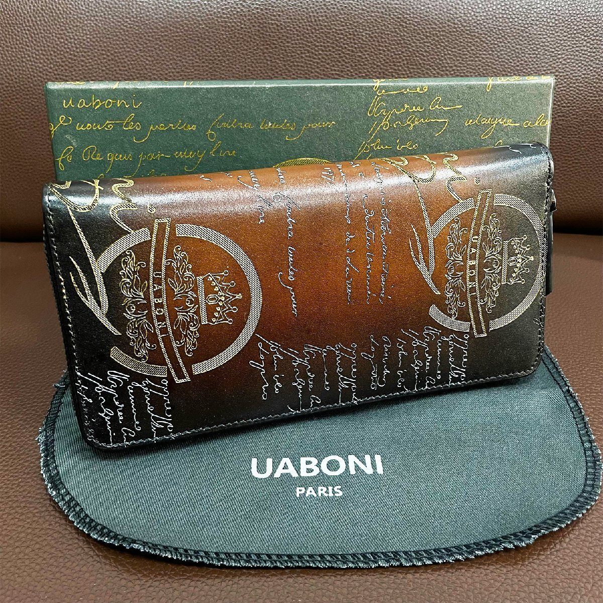 希少 定価23万 特注限定品◆UABONI*ユアボニ*幻のパティーヌ*ラウンドファスナー長財布*EU製◆カリグラフィー ゴールデン シルバー 手染 絶賛 本革