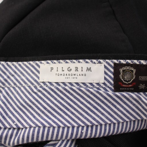 トゥモローランド TOMORROWLAND PILGRIM ウールツイルスリムスラックス テーパードパンツ ジップフライ 48 黒 ブラック 61-04-21-04102