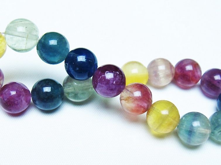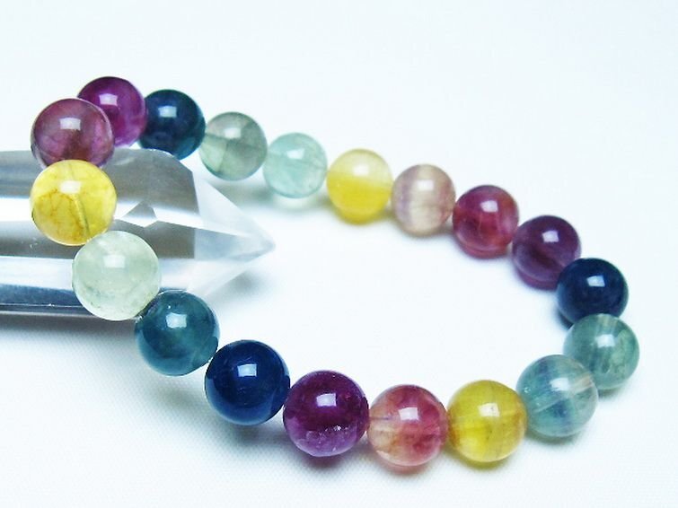■商品名: フローライト ブレスレット ■商品ID: T229-5338 ■商品重量:約 33g ■商品サイズ:内周約:156mm(±5mm)粒直径約:10mm(±0.5mm) 【フローライト(蛍石)】 フローライトは鮮やかなカラーのグラデーションが美しい天然石で、トルマリンに次ぐカラーバリエーションを持つとされています。 フローライトの中に白い羽のような内包物が入ったものは「エンジェルフェザーフローライト」と呼ばれ、普通のフローライトに比べて癒しの効果に特化しているとされています。 白い内包物の正体は未だに解明されておらず、アラゴナイトの一種やゼオライト、クォーツなど諸説あります。 フローライトはラテン語で流れるという意味の「fluere」が由来となっており、その言葉どおり滞っていた気の流れを整えて心身と環境のバランスを調和させるエネルギーを持つとされています。 また「天才の石」とも呼ばれ、思考力と記憶力、集中力を高めるとされており、クリエイティブな能力を引き出すといわれています。 緑は癒し、紫は浄化、青は知性、黄色は希望など、色合いによって持つ意味や効果に違いがあるともされていますので、期待する効果によってフローライトを選ぶのもおすすめです。 ⇒ フローライトをもっと詳しく ◆ワンポイント情報 フローライトは硬度が低く、一方向に割れやすい劈開性を持つため衝撃を与えないようにしてください。 また、紫外線や水分も褪色や劣化の原因となりますので保管の際も注意が必要です。 |