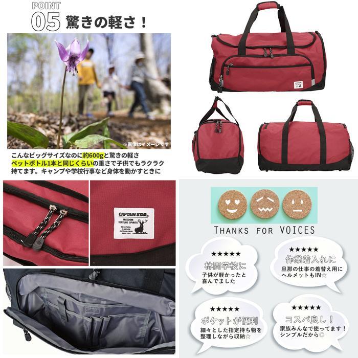商品説明 | ・・牡鹿のロゴアイコンが印象的!日本発のアウトドア用品ブランド「キャプテンスタッグ」から大容量ボストンバッグが新登場! ・メイン収納部の横幅約59cmのたっぷりサイズ。 ・旅行やアウトドア、スポーツイベントなどに活躍する大容量約50リットル。 ・メイン収納開口部には、コの字型に大きく開くダブルファスナーを採用し、ユニフォームや着替え、スポーツ用品もしっかりと収納可能。 ・内側には、吊りベルト付きオープンポケット、ファスナーポケット付き。 ・フロントには、普段使いのツールの持ち運びに便利な2つのファスナーポケットを配置。 ・そのうち、ラウンドファスナーポケット内部には、オープンポケット×1、スマホ用ベルト付きポケット×1、キーフック付きポケット×1、ペン差し×3を装備し、必要な小物の取り出しがスムーズ。 ・バッグ右サイドにはシューズ専用ポケット、左サイドにはウォーターボトルやタオル用のメッシュポケットも設け、フィットネスジムやスポーツ合宿用のバッグとしても最適。 ・付属のショルダーベルトで肩掛けにもできる2WAY使用。荷物が多めになっても肩に負担を掛けずに持ちやすい、クッションパッド付き。 ・フロントファスナー両端には、自動車のライトにキラリと光るリフレクター素材を配置。 ・丈夫で切れにくく、軽量に仕上げたリップポリエステル生地を、男女ともに使いやすいシンプルなカラーにデザイン。お子さまの修学旅行や、部活用のボストンにオススメ。 |