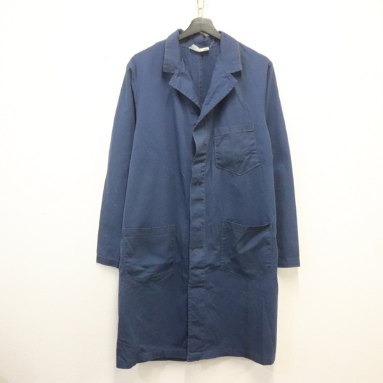 商品名 i631 80sビンテージ ショップコート ワーク コットンポリエステル■1980年代製 約Mサイズ ブルー 無地 古着 アメカジ ストリート 90s 70s