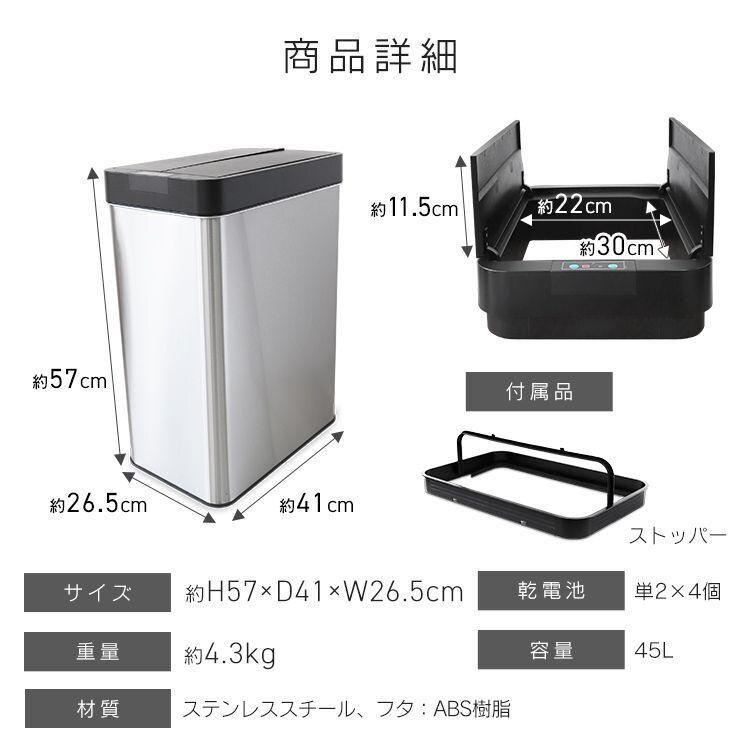 【追加症状】箱汚れ とっても便利!センサーでフタが自動開閉! 手をかざすとセンサーが感知してフタが開きます。 直接手を触れずに開けられるので、とっても衛生的です! 台所はもちろんのこと、赤ちゃんのおむつ捨て、医療の現場にもぴったりです! 手動でも開閉可能!ボタン操作できます。 電池式なので電源を気にせず、どこにでも設定できます☆ 大容量な45Lタイプでシンプルなデザイン。 キッチンやリビングなどに置いてもマッチしやすいです。 【商品仕様】 内容:本体 ×1 カラー:シルバー 容量:48L サイズ:(約)高さ57cm×幅41cm×奥行26.5cm 重量:(約)4.3kg 使用電池:単二電池×4(別売) 素材:ステンレススチール、ABS樹脂 他 ※訳あり品のため、即日発送できない場合があります。 ※出荷前検品により、発送が困難であると判断した場合は、ご注文をキャンセルさせていただく場合がございます。 【訳あり品の注意事項】※必ずご確認ください ・お安く提供しておりますのでご了承の上、ご入札をお願いします。 ・落札個数分の送料が必要となります。 ・通常の商品とは異なり、保証期間はございません。 ・組み立てに必要なボルトナット類(組立パーツ)が不足している場合は、お客様でご用意お願いいたします。 ・細かなことが気になる神経質な方は、ご入札はお控えください。 ・訳あり部分の整備、修繕や調整が可能な方のご入札をお待ちしております。 ・訳あり品はその性質上、再入荷のお約束ができません。 ・販売価格は随時見直しを行い、事前の予告なく変更いたします。 ・本商品を使用した際に発生したトラブル、事故につきまして、当社は一切の責任を負いかねます。 ・人身および物損事故のないように十分ご注意ください。 ・商品は、モニターによって色合いが異なって見える場合があります。 ノークレーム・ノーリターンでお願いいたします。 ・訳あり品ですので、いかなる場合もノークレーム/ノーリターンでお願いします。 |