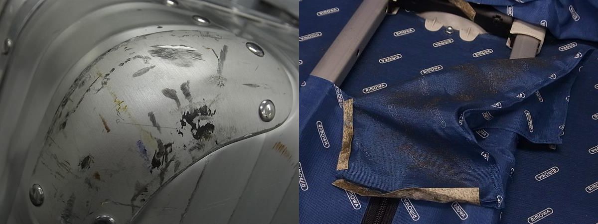 傷 ヘコミ キャリーバー色変わり 内部素材剥がれ 中生地劣化 粉吹き