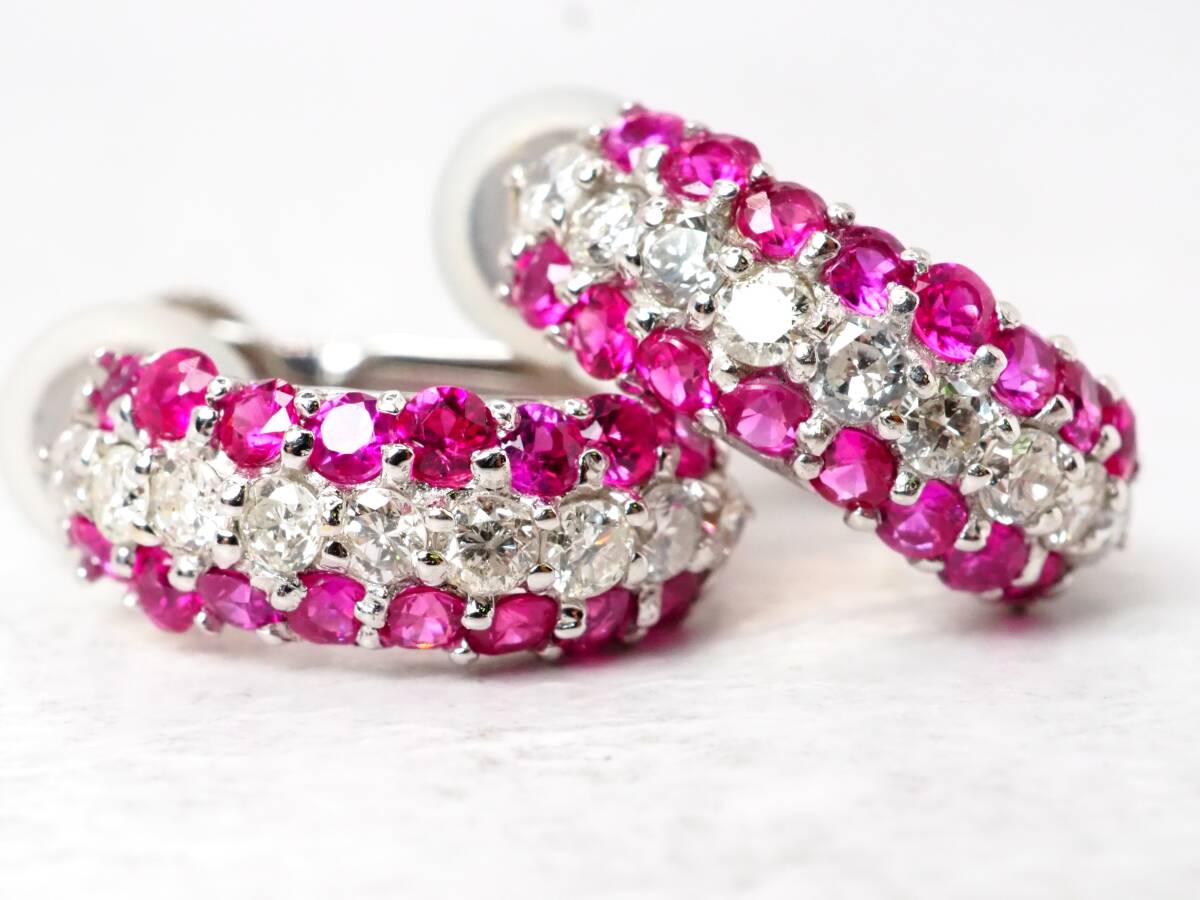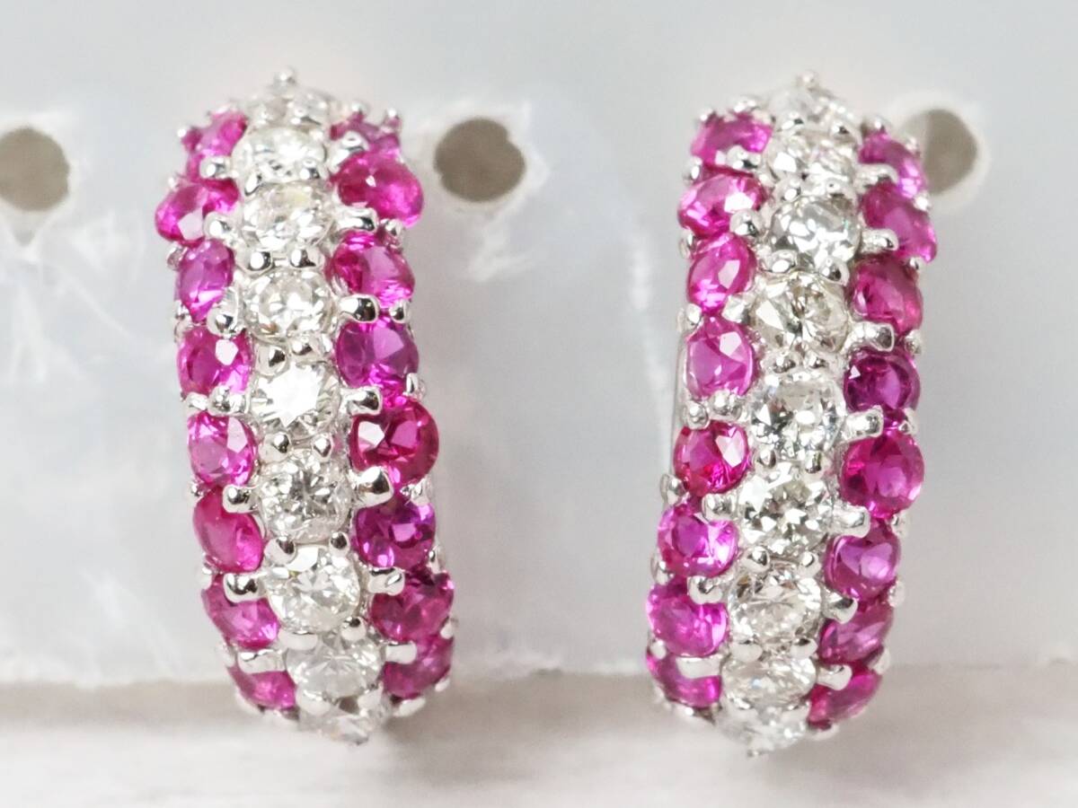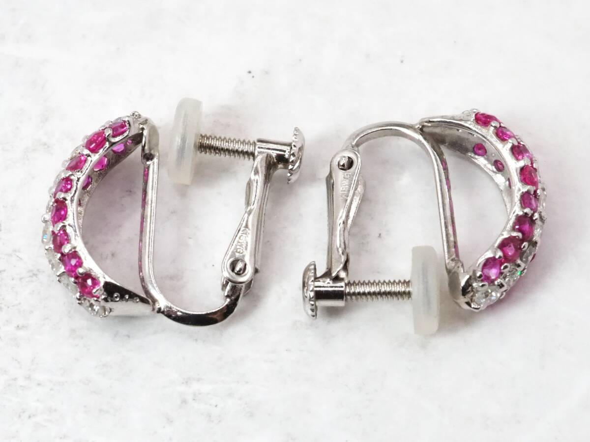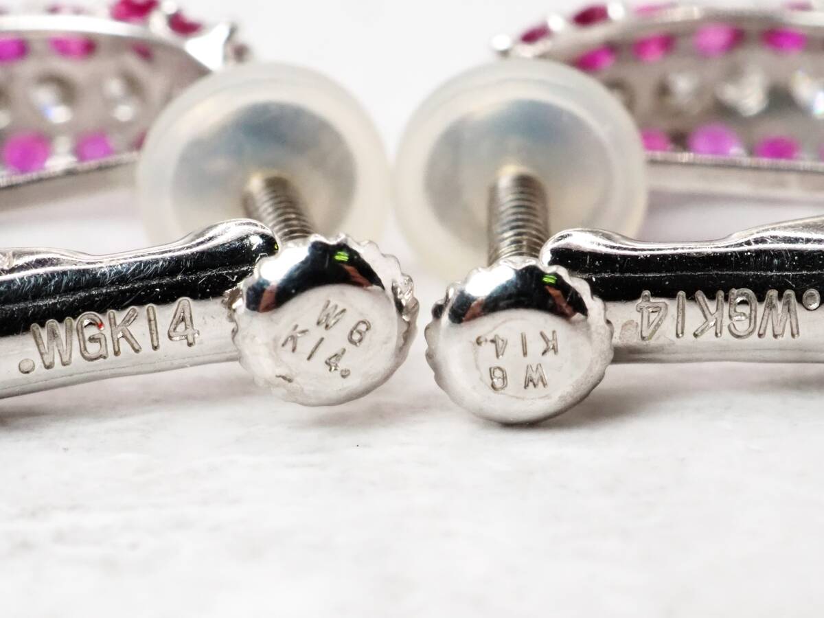 【8221D】鑑別書付 K18WG/K14WG 天然ルビー 天然ダイヤモンド 計0.74ct/0.36ct/2.65g イヤリング