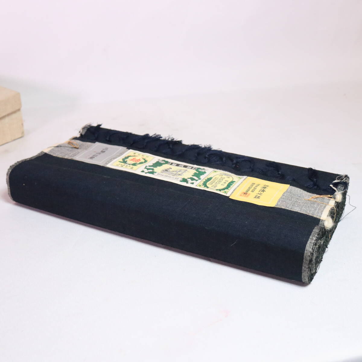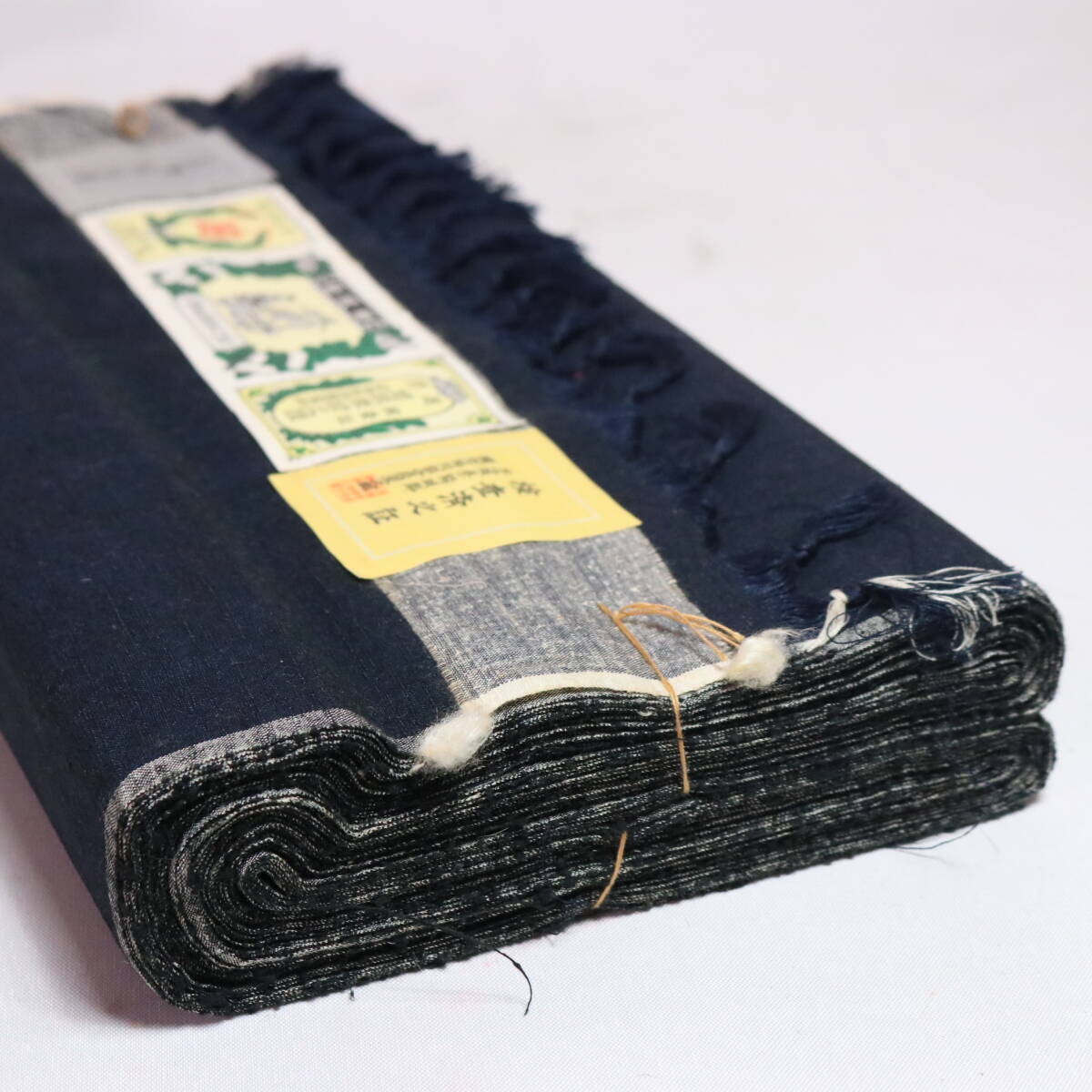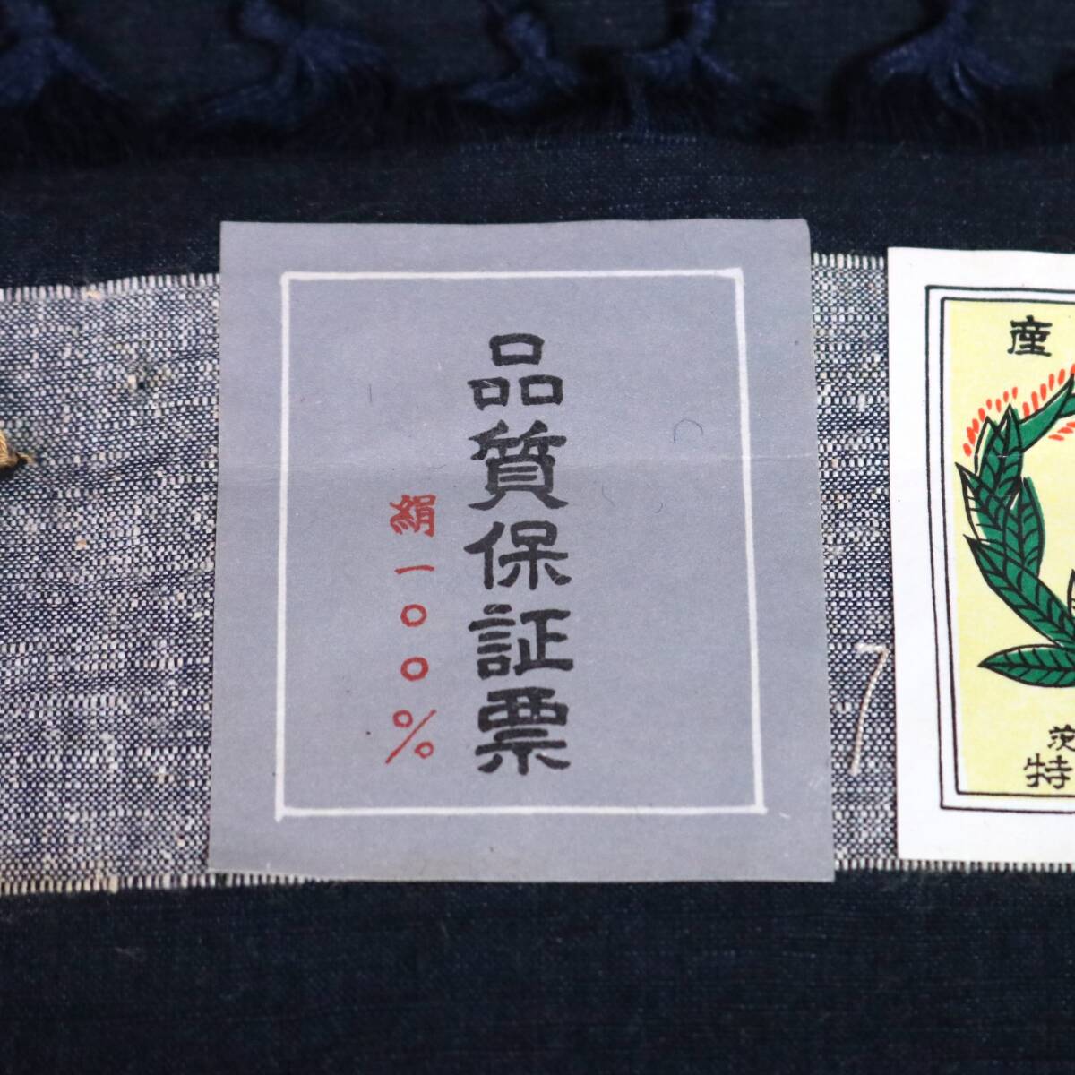 B1157 絹100% 紬 つむぎ 特選別織 結城紬 結城織物之証 着物 紺色 ネイビー 織物 箱入り ラベル付き