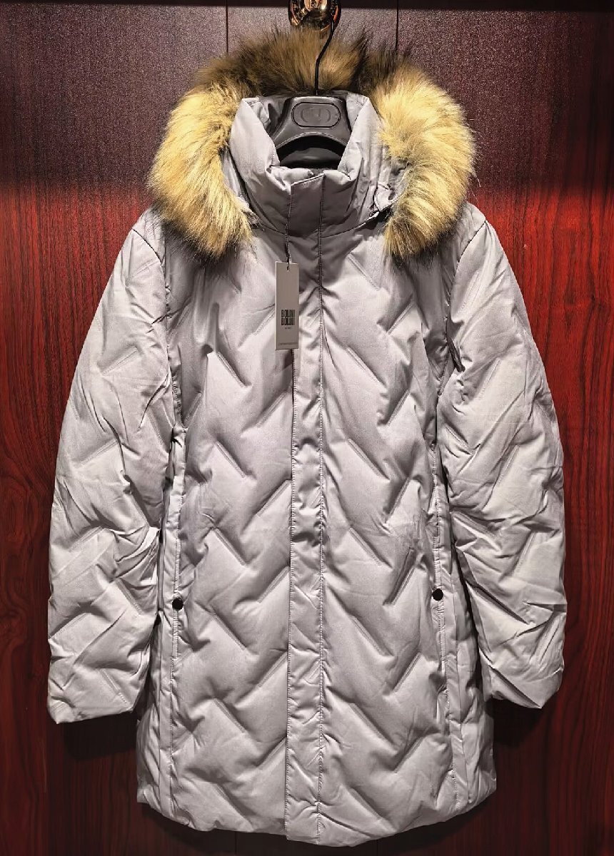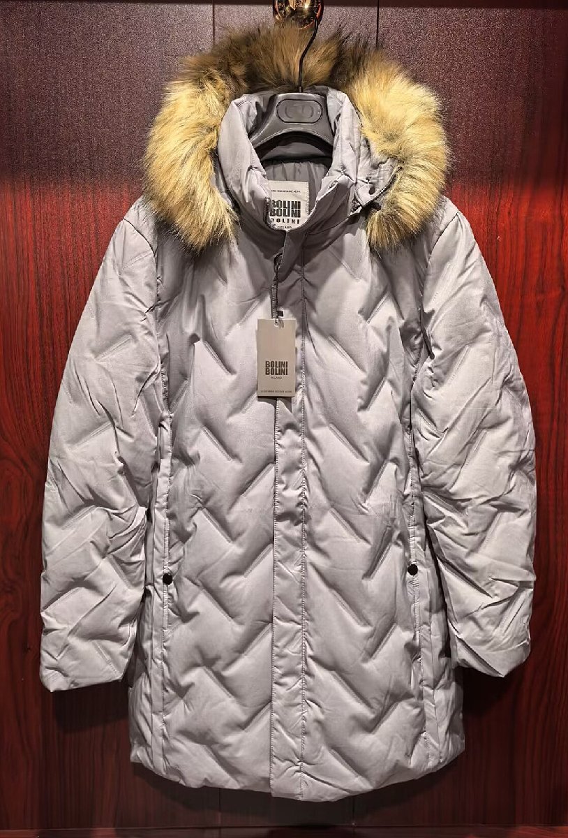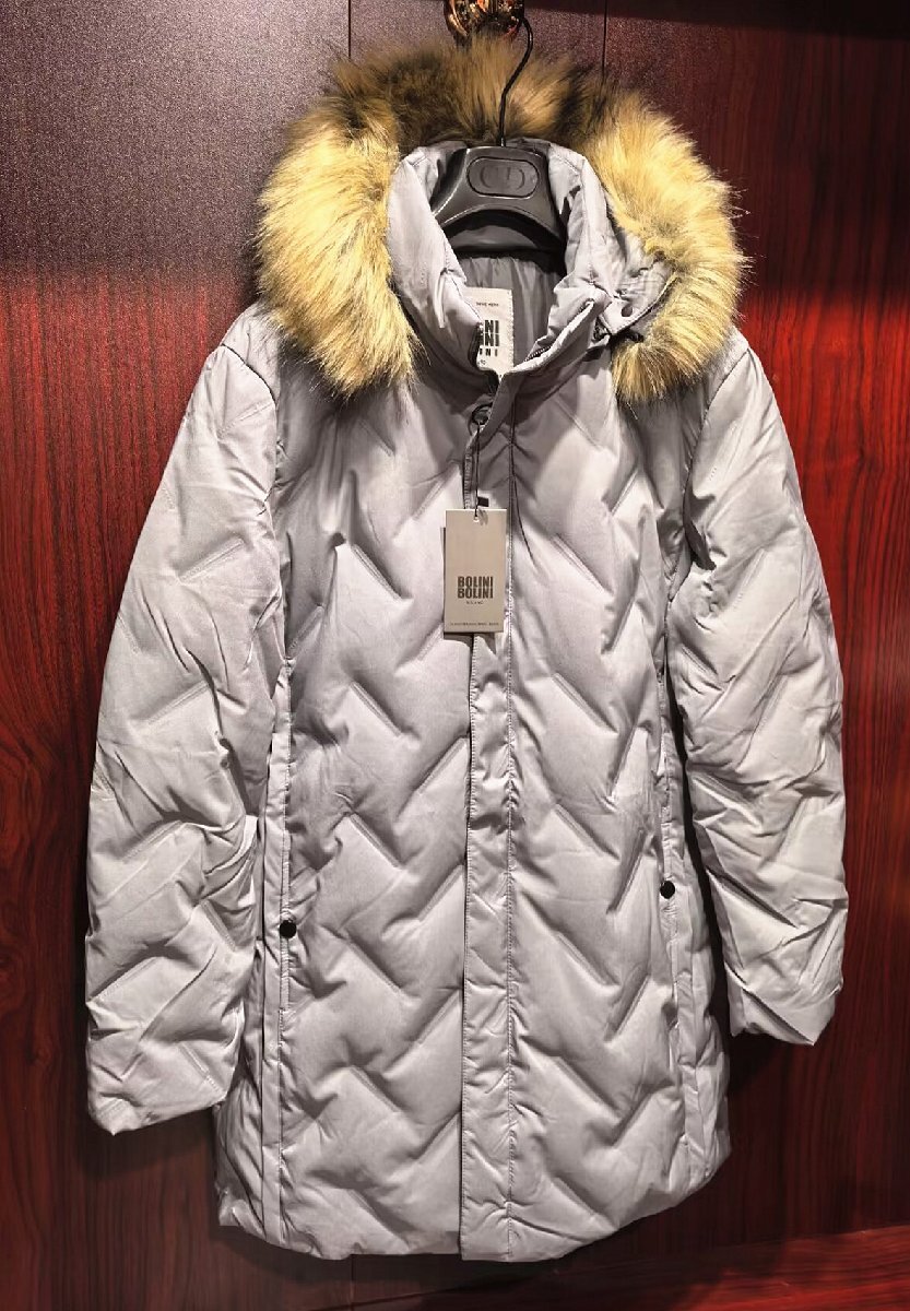 最高級※定価20万◆イタリア・ミラノ発*BOLINI*プレミアムダウン・豪華毛皮ファー付・極地防寒*ダウンジャケット・コート・クレイ・54/3XL