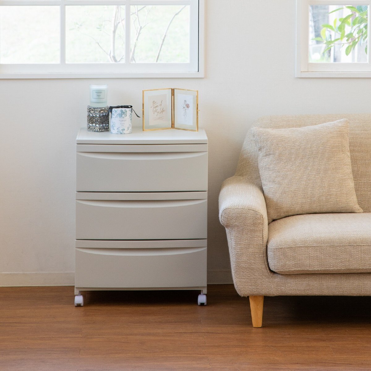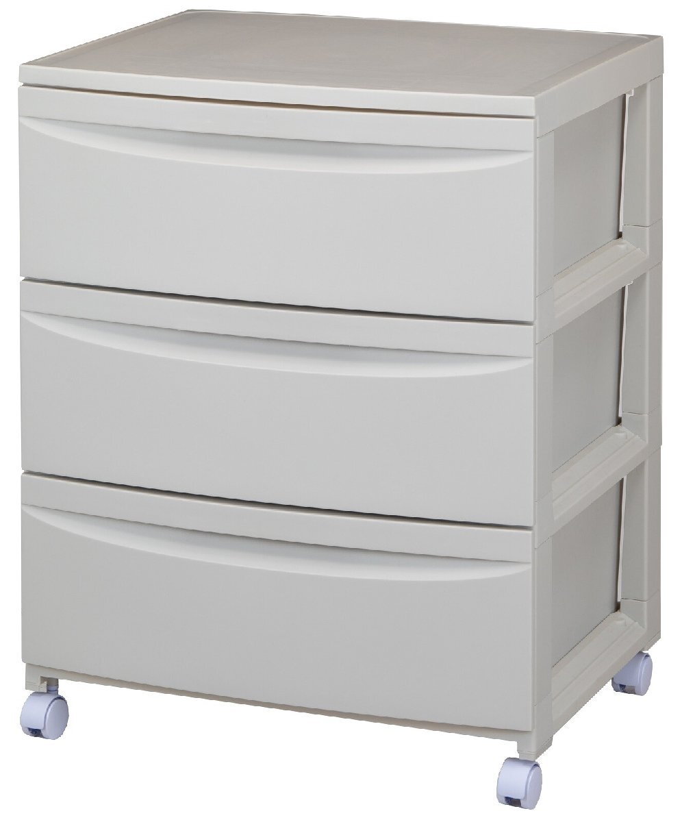 即決可@新品[日本製収納ケースプラスチック]キャスター付収納ワイドチェスト3段ルーセント543 引き出し式収納ケース/ミルクティーベージュ | ||||||||||||