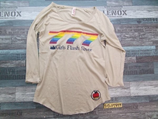 RODEO CROWNS ロデオクラウンズ レディース プリント 七分袖Tシャツ ベージュ です。