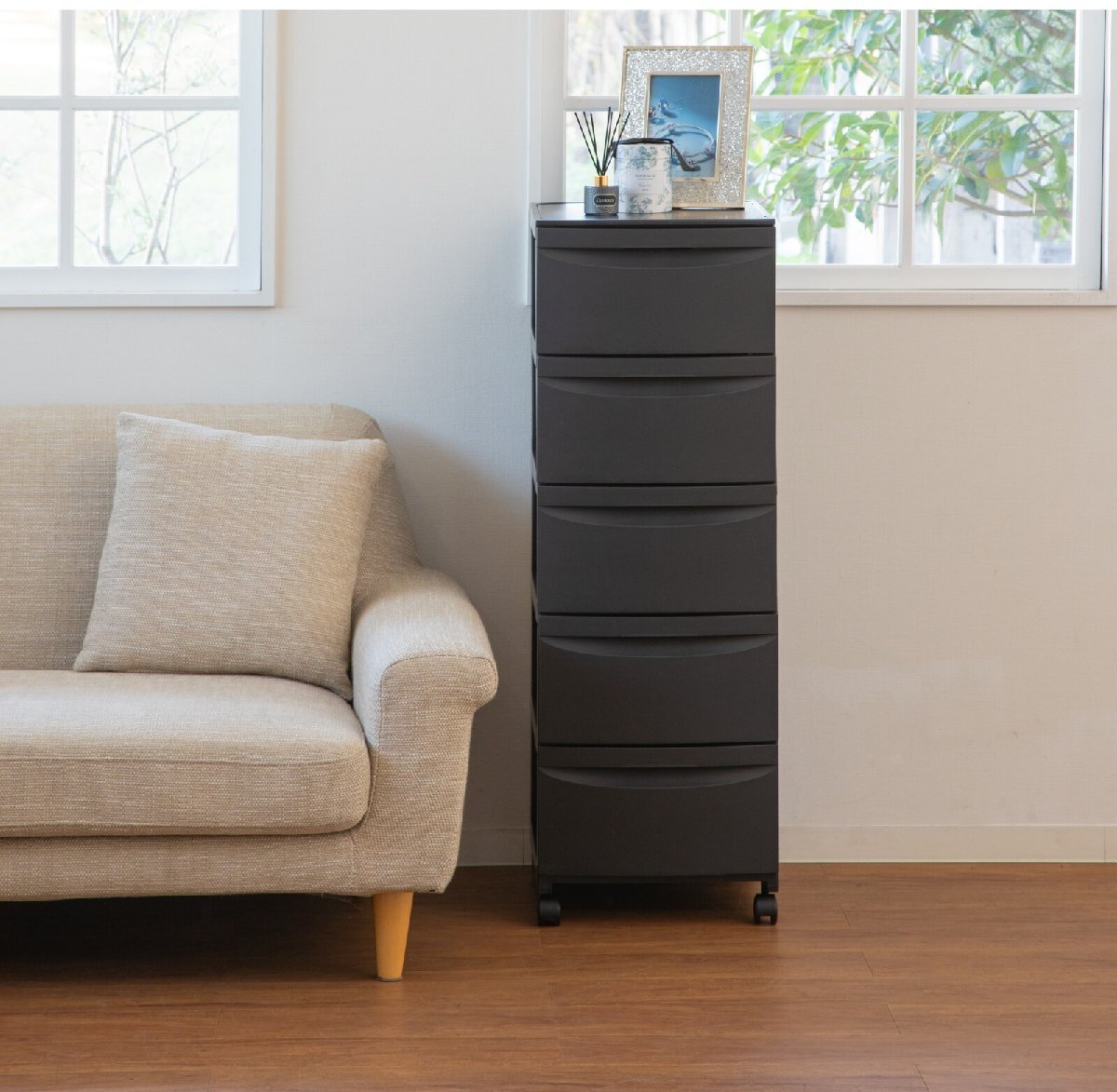 即決可@新品[日本製収納ケースプラスチック]キャスター付収納スリムチェスト5段ルーセント365引き出し式衣類ケース/ダークグレー | ||||||||||||