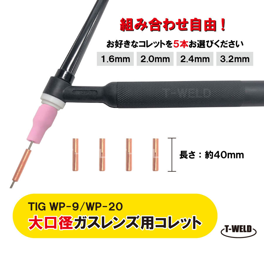 【組み合わせ自由!】TIG WP-9、WP-20 大口径ガスレンズ用 コレット 5本 適合型番:13N22L 13N22ML 13N23L 13N24L