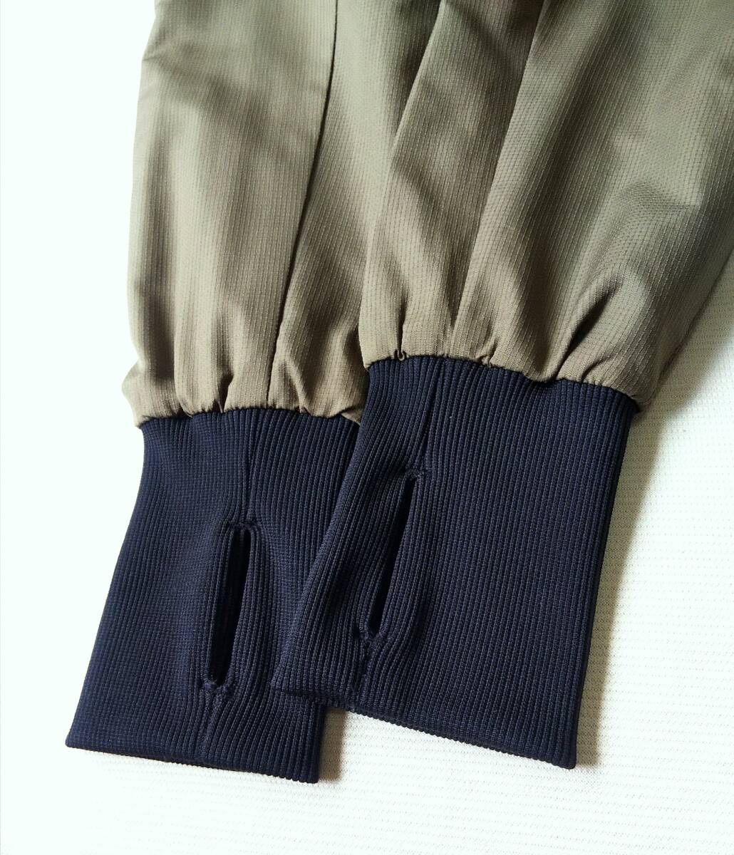 「ハの字止水ファスナー」が特徴的なウインドブレーカーです。