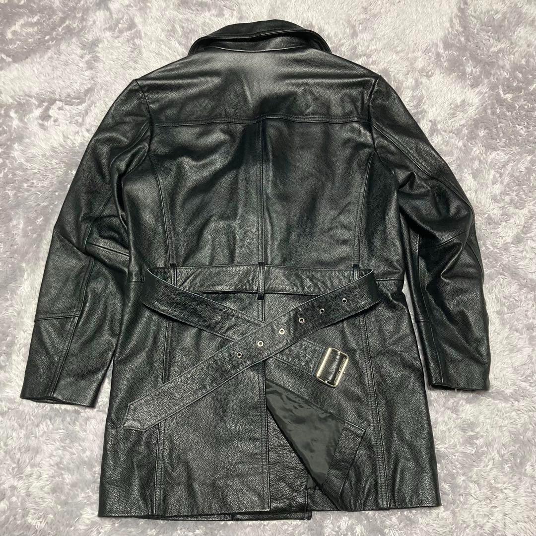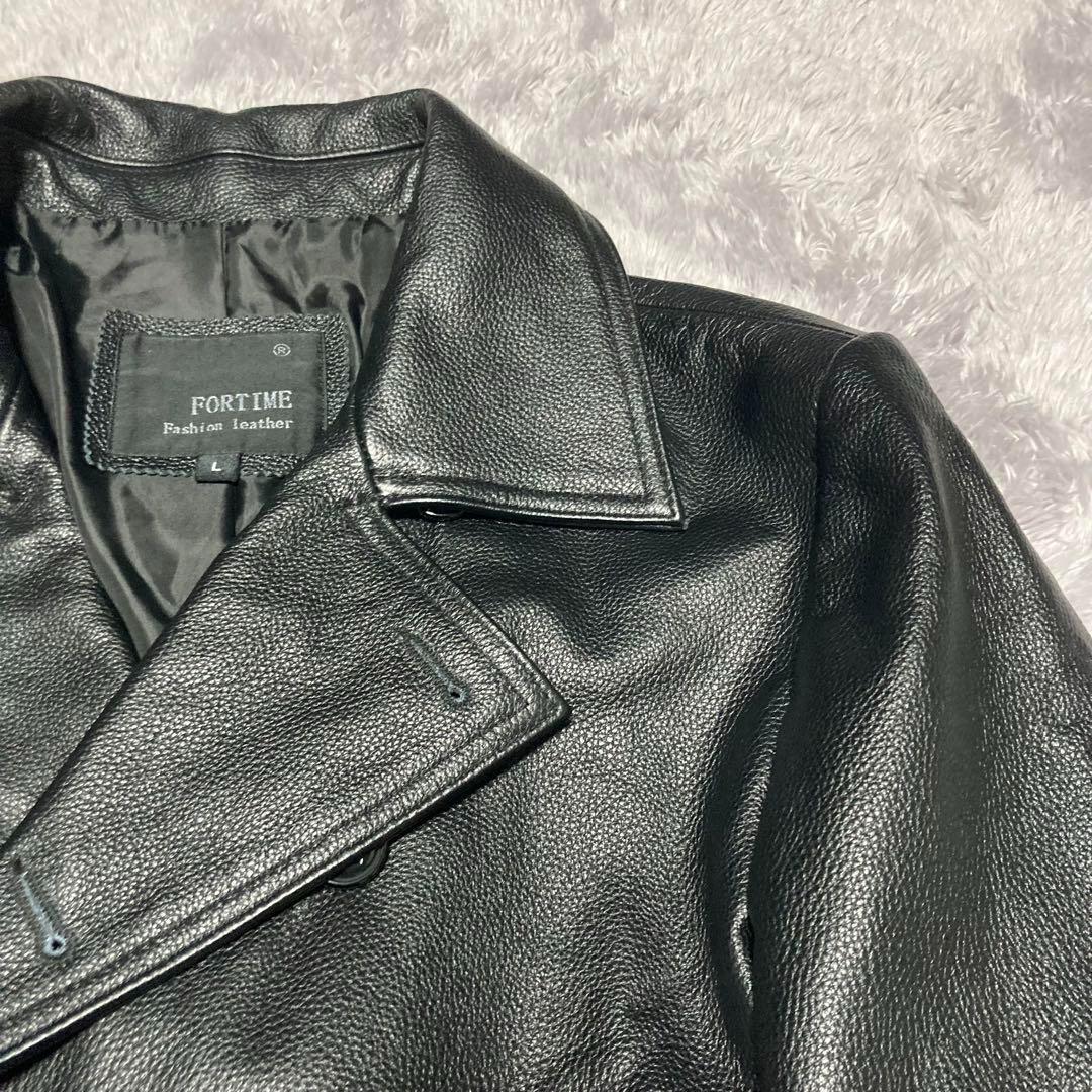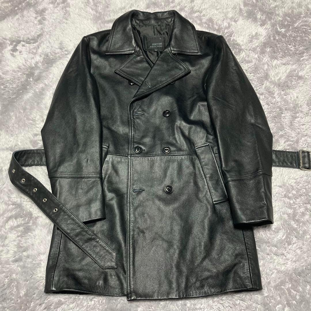 美品 希少 FORTIME 牛革レザーダブルトレンチコート ブラック サイズL 黒 ベルト