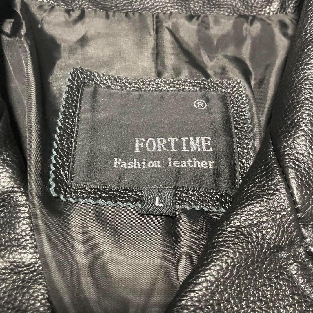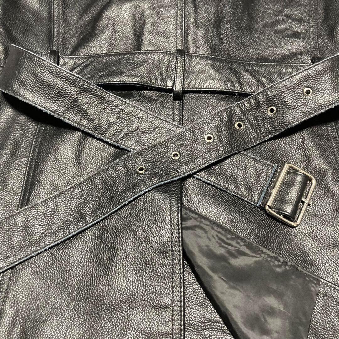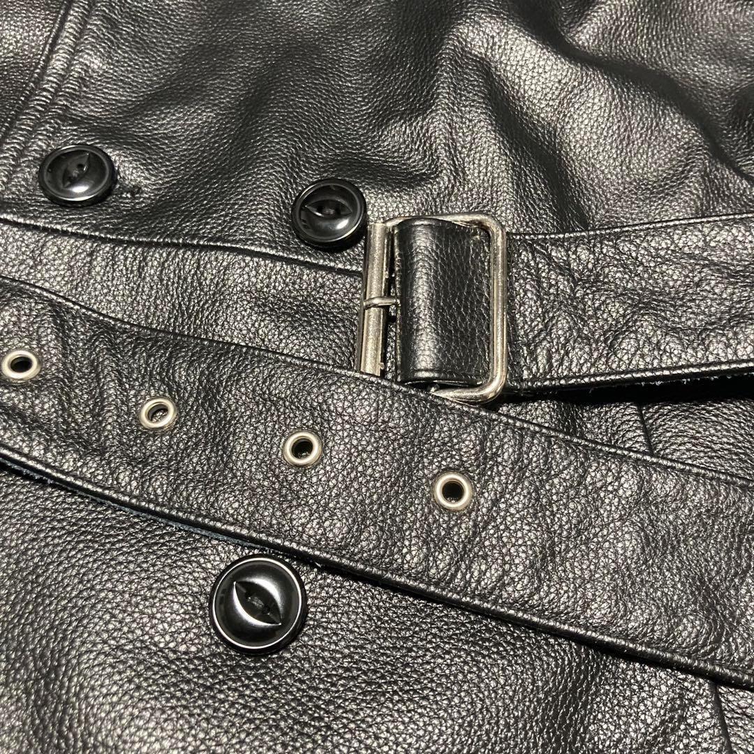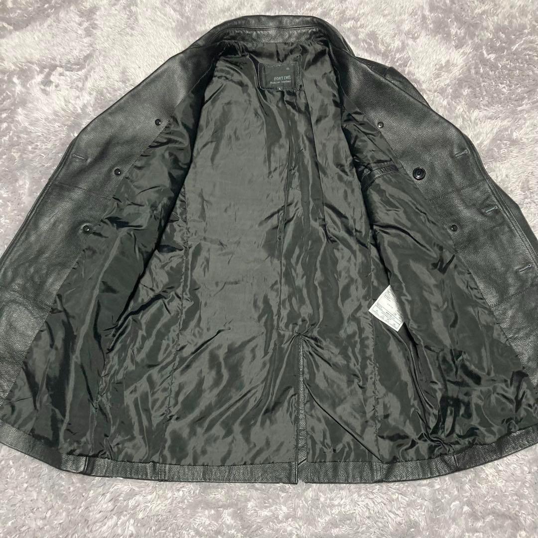 美品 希少 FORTIME 牛革レザーダブルトレンチコート ブラック サイズL 黒 ベルト