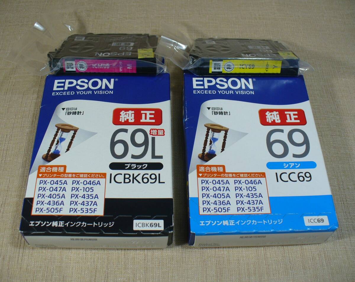 エプソン 純正インクカートリッジ 砂時計 IC4CL69相当 ICBK69L 増量タイプ / ICC69 / ICM69 / ICY69 4色セット 未使用!