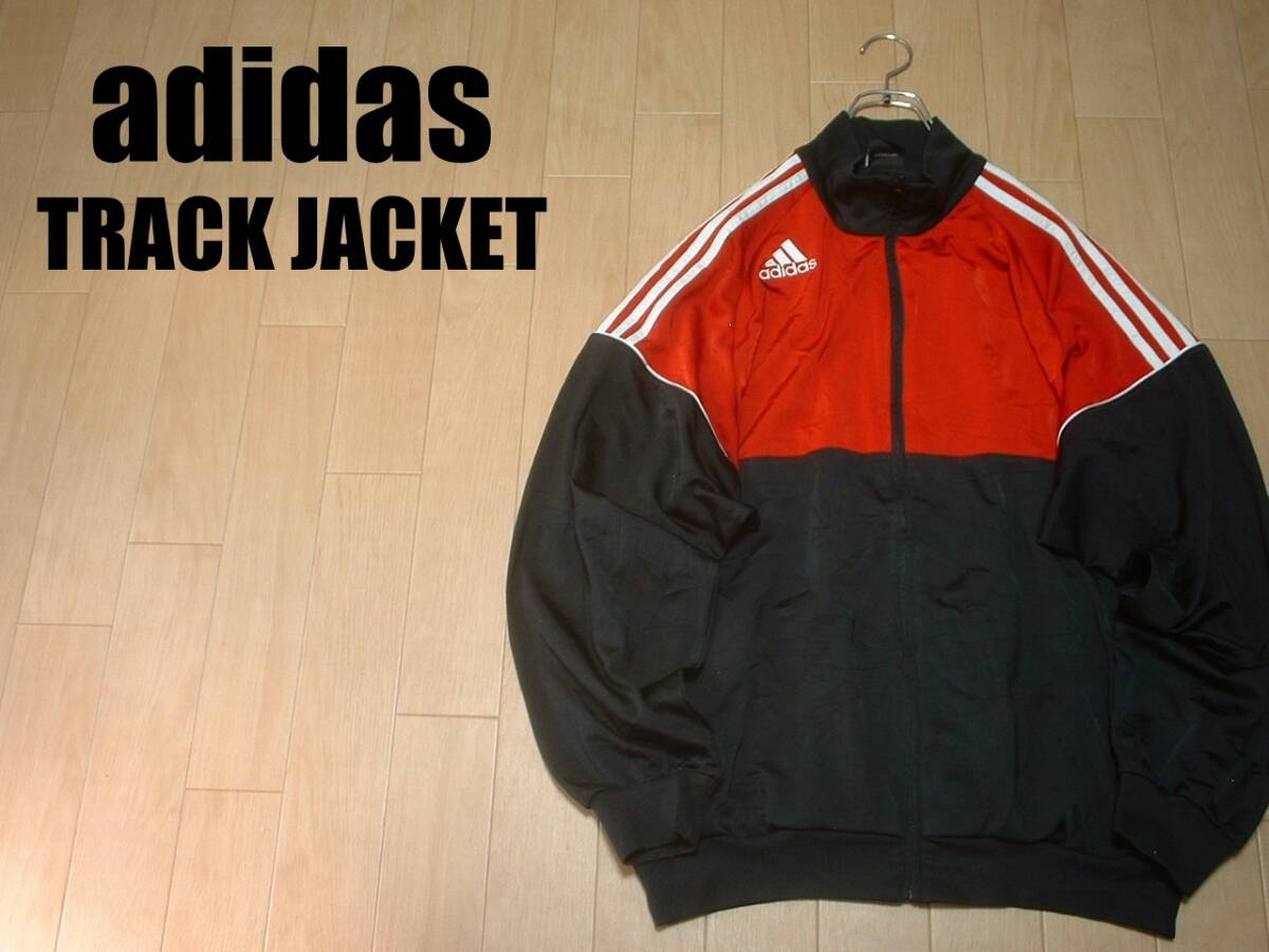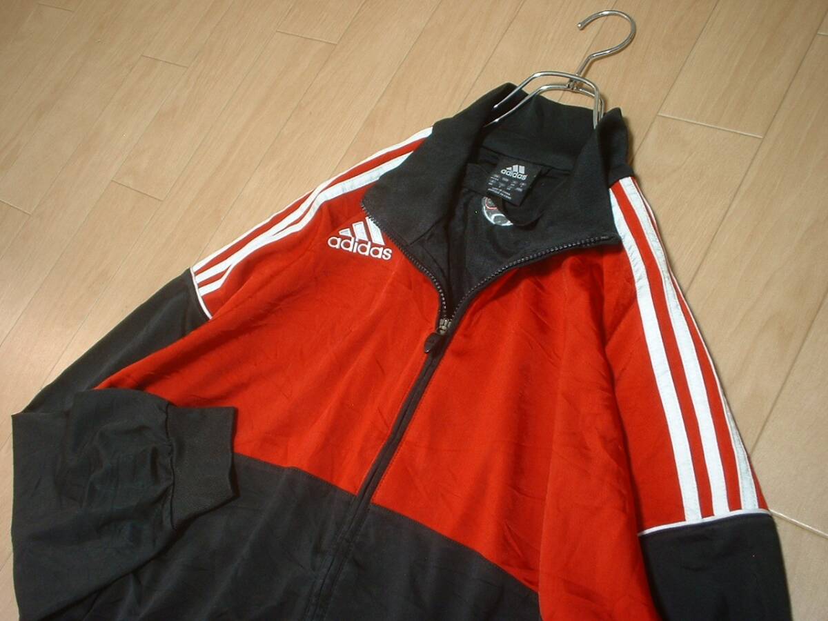 adidasパフォーマンスロゴ刺繍スリーストライプスジャージトップXOグッドカラー正規オールドアディダストラックジャケット黒ブラック赤x白