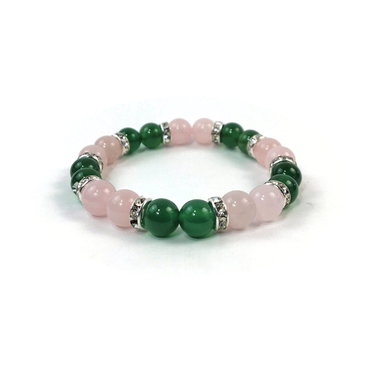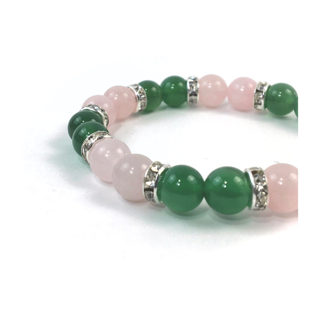 ローズクォーツ&緑瑪瑙 パワーストーン ブレスレット 8mm 天然石ブレス シルバー / 浄化 美・愛 恋愛運 レディース ピンク