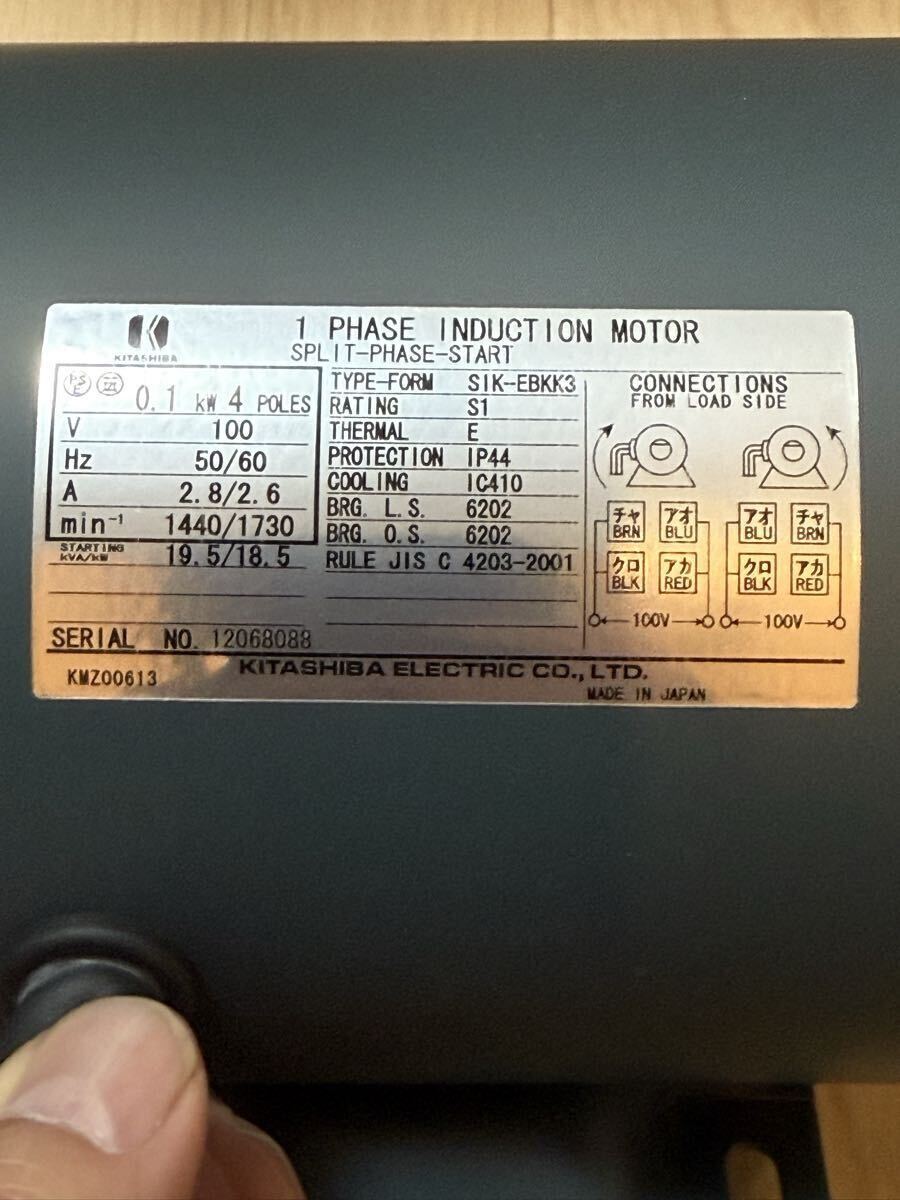 ②北芝電気 SIK-4P-0.1KW-EBKK3-100V両軸