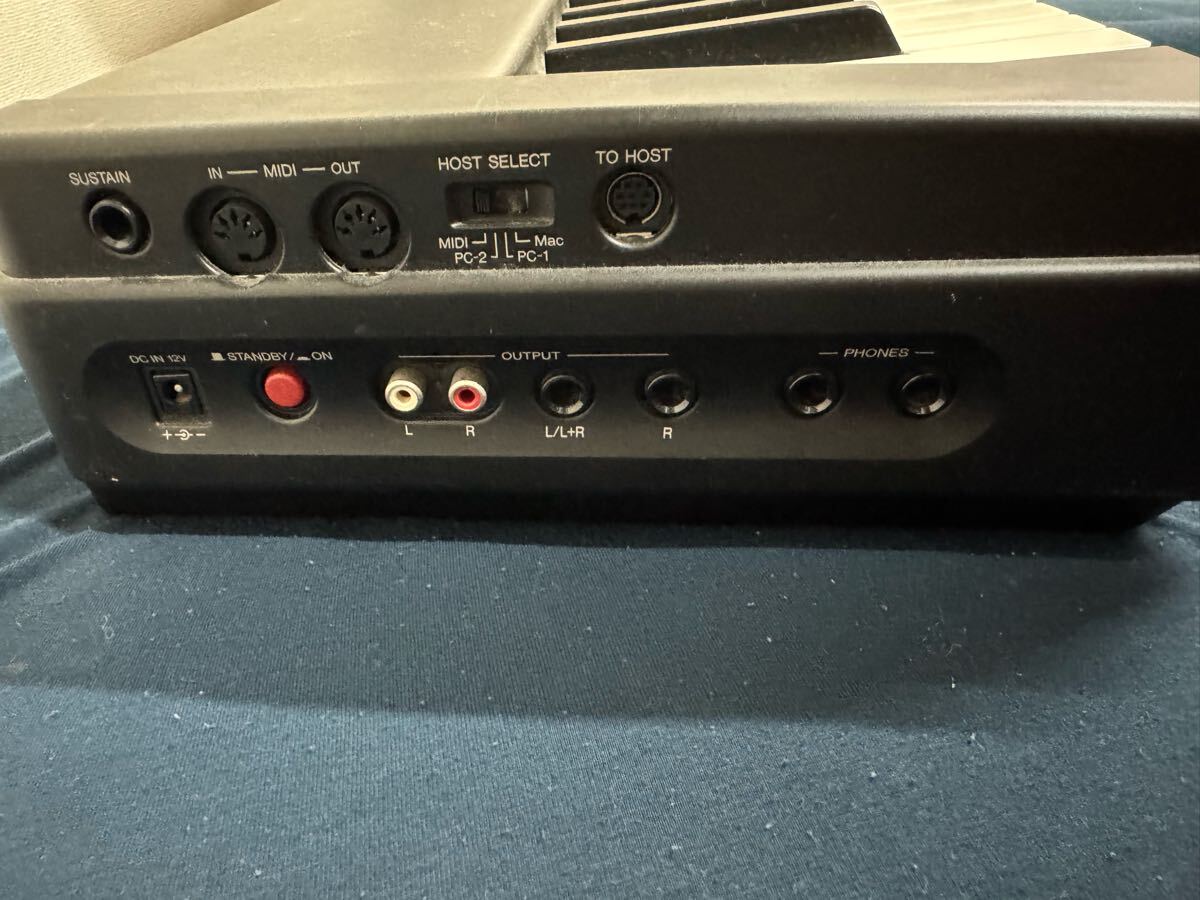 - 接続端子: MIDI IN/OUT, OUTPUT (L/R), SUSTAIN, TO HOST