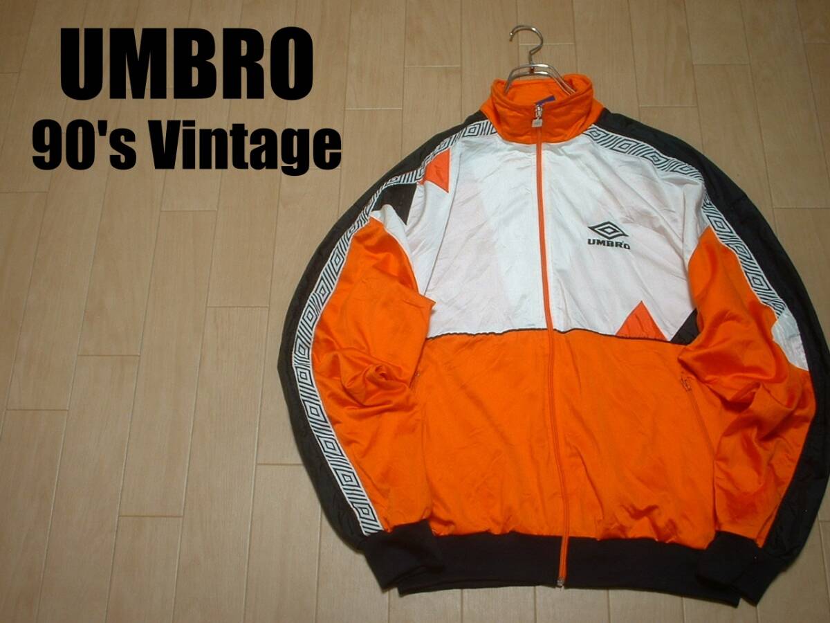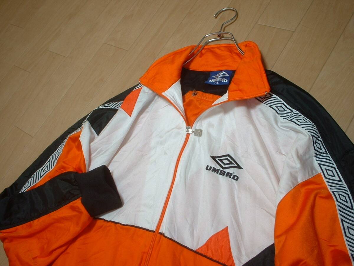 UMBROマルチカラートラックジャケットXL橙オレンジホワイトブラック正規アンブロVintageジャージトップ90sビンテージOASISリアムギャラガー