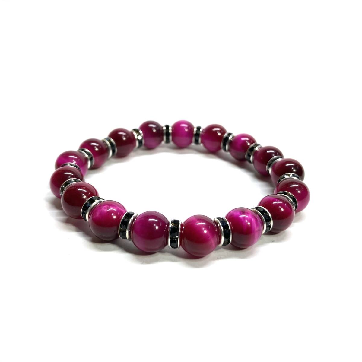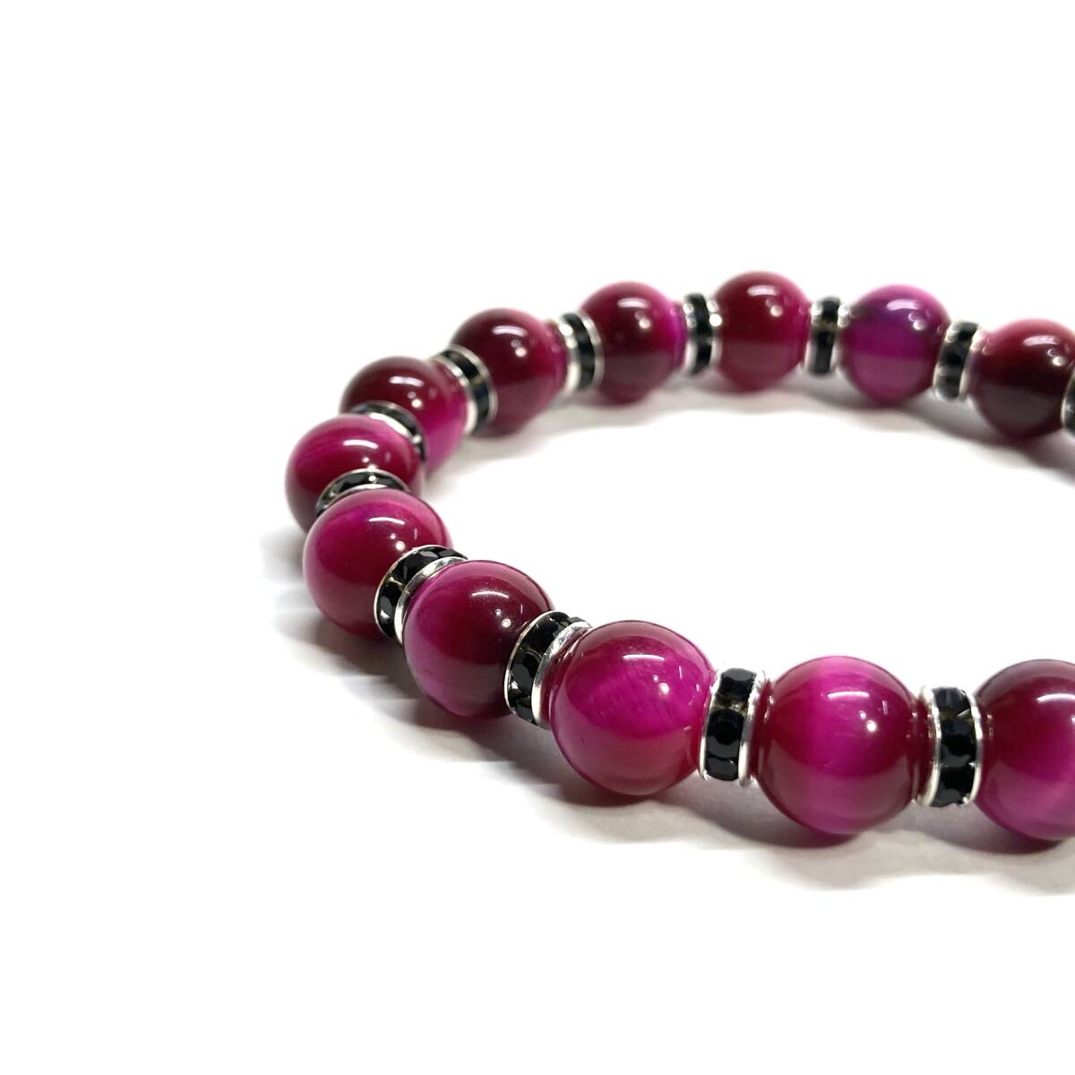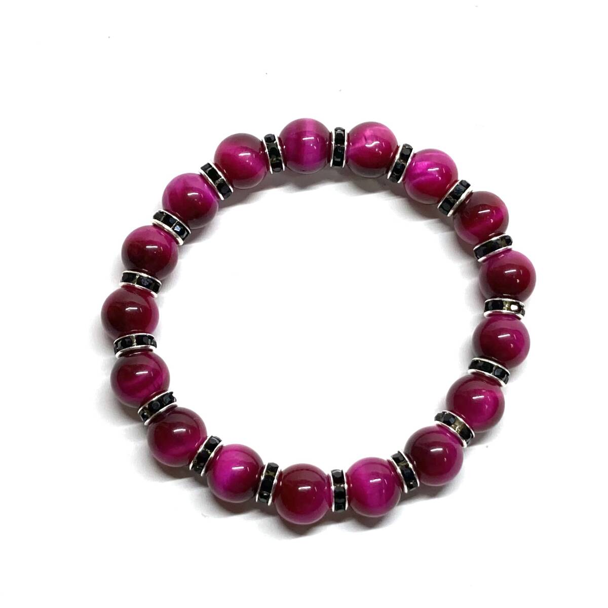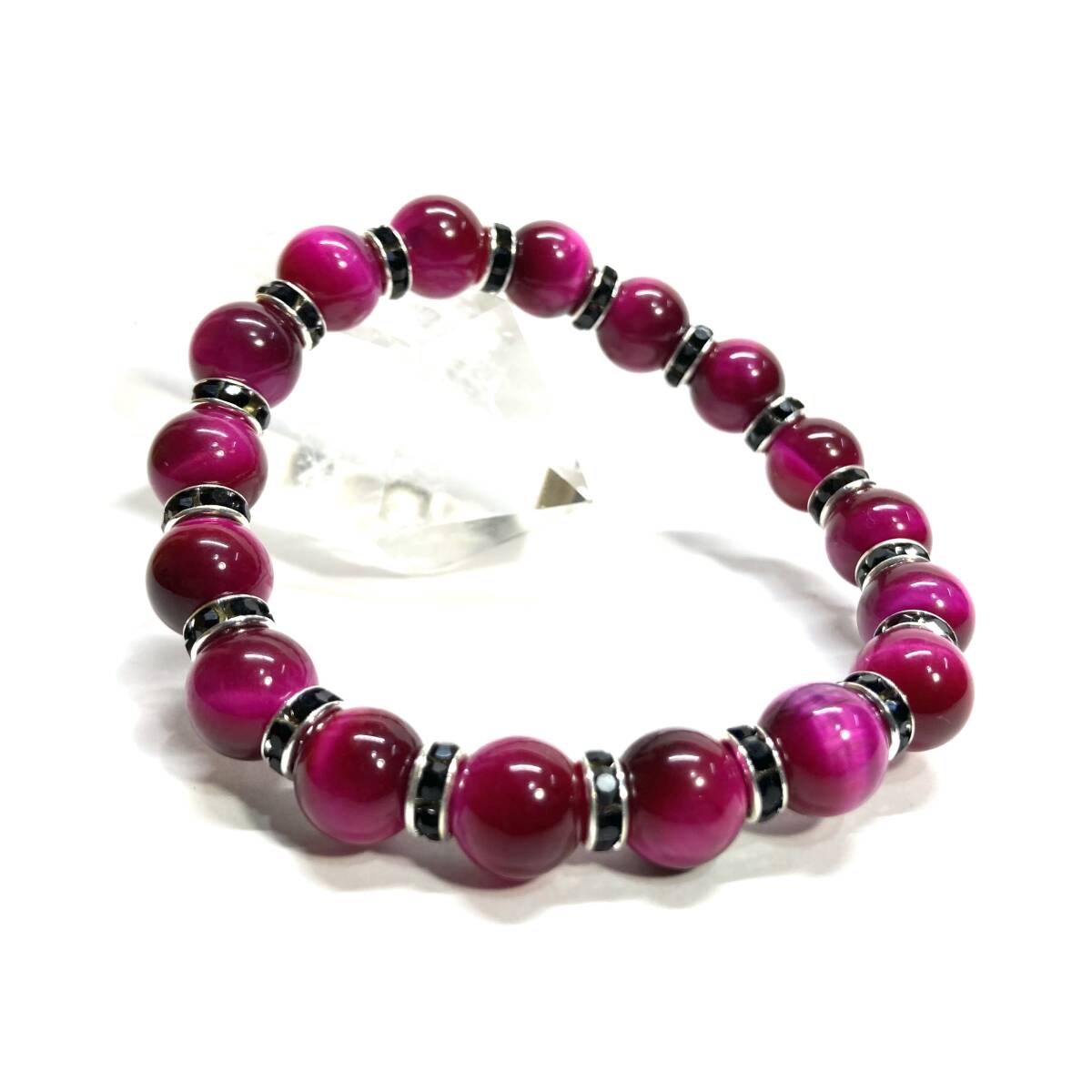 ピンクタイガーアイ パワーストーン ブレスレット 8mm (ブラック) /開運 浄化 金運 仕事運 恋愛 人間関係 効果 レディース 通販 ピンク色