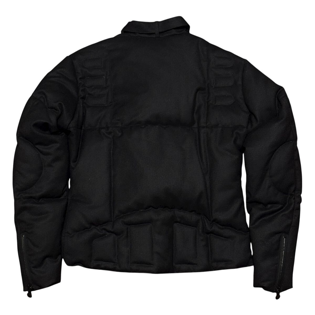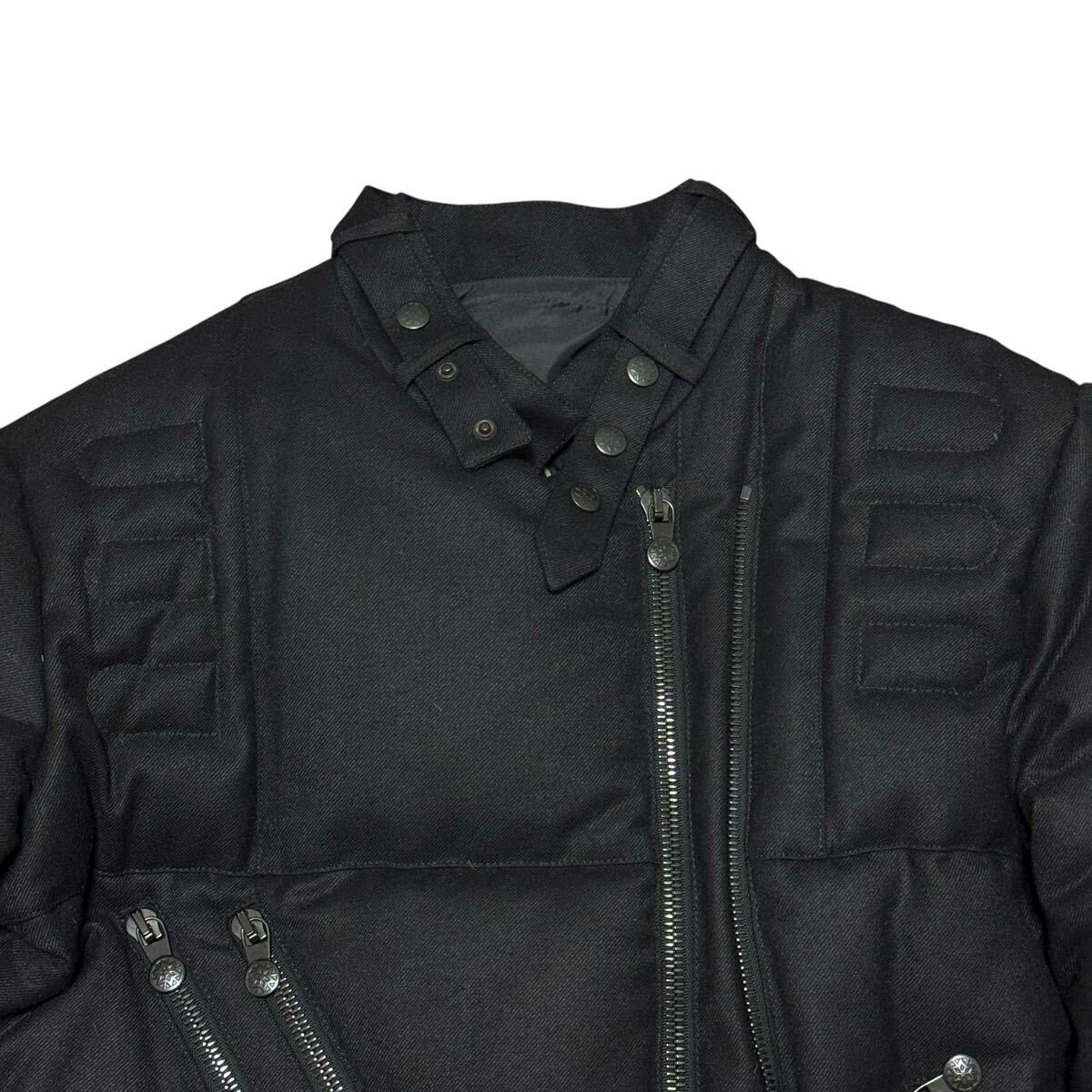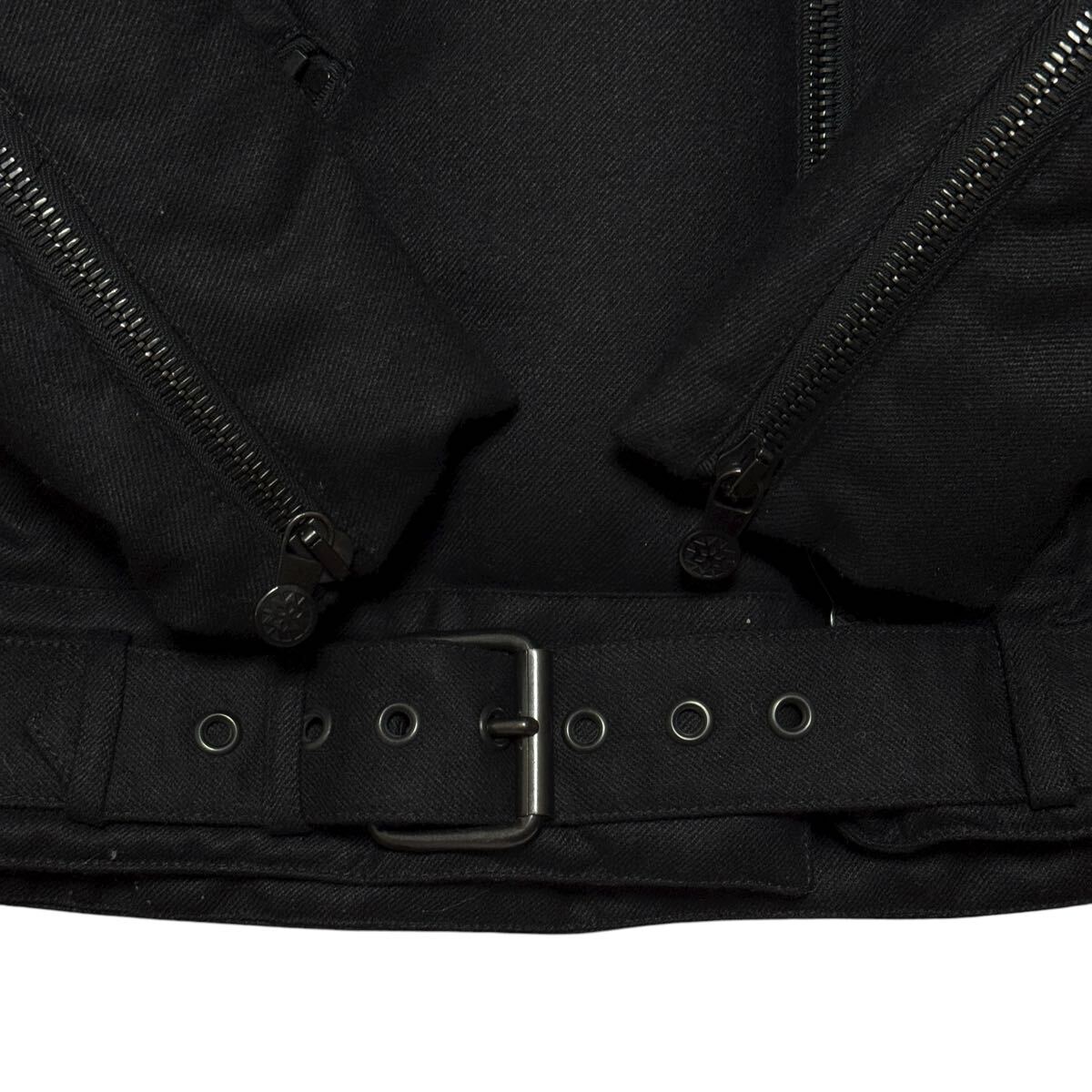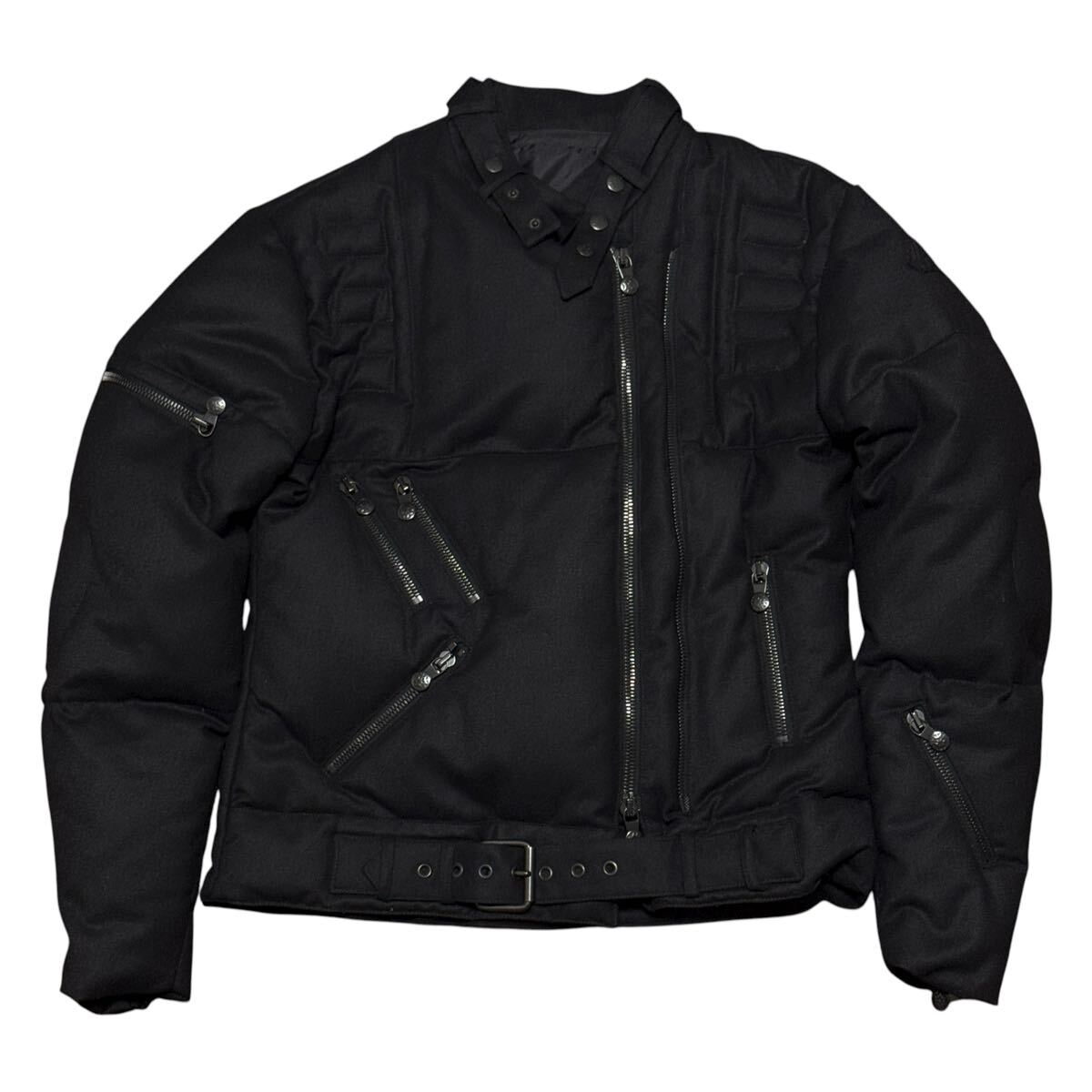 斜めジップ、ウエストベルト、チンストラップ付きのバイカースタイルに、ダウン90%/フェザー10%の中綿を採用。真冬の寒さにも対応できる高い保温性を誇ります。