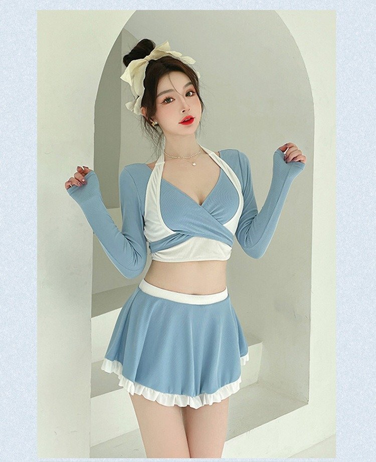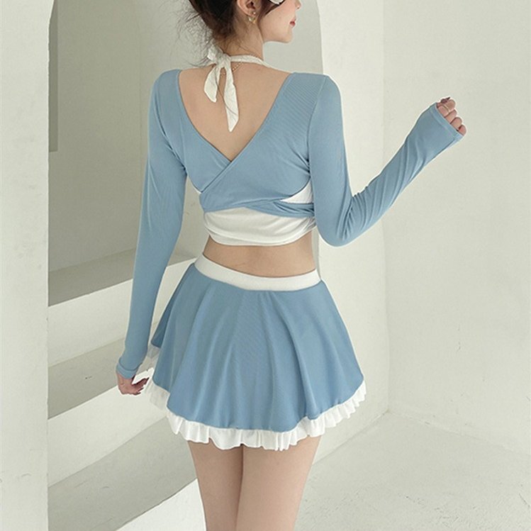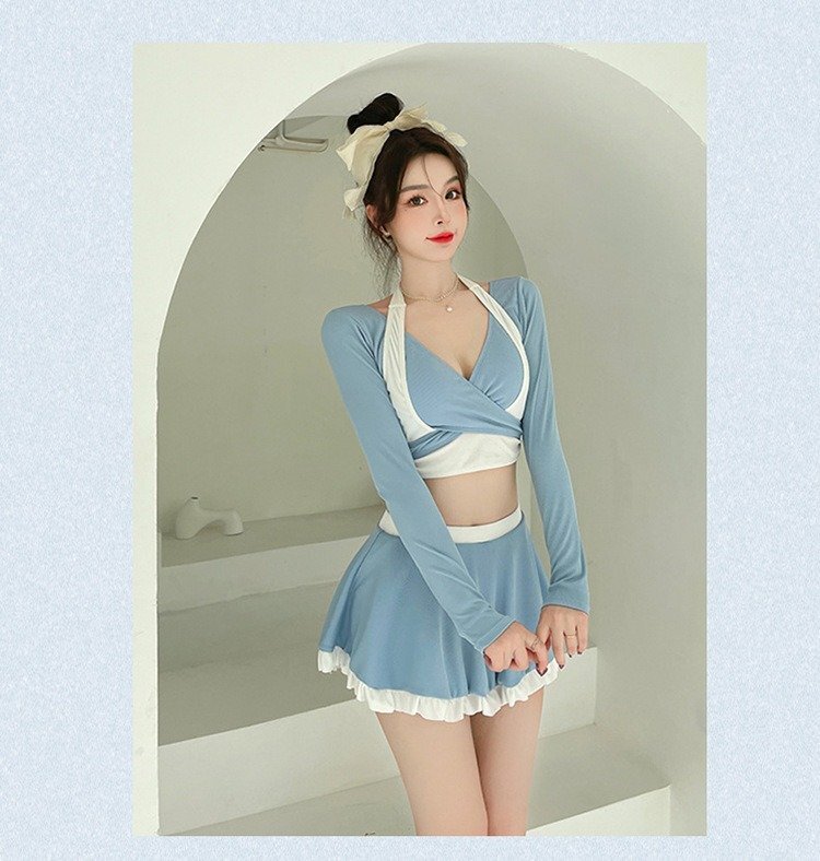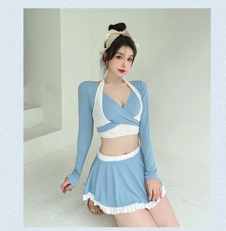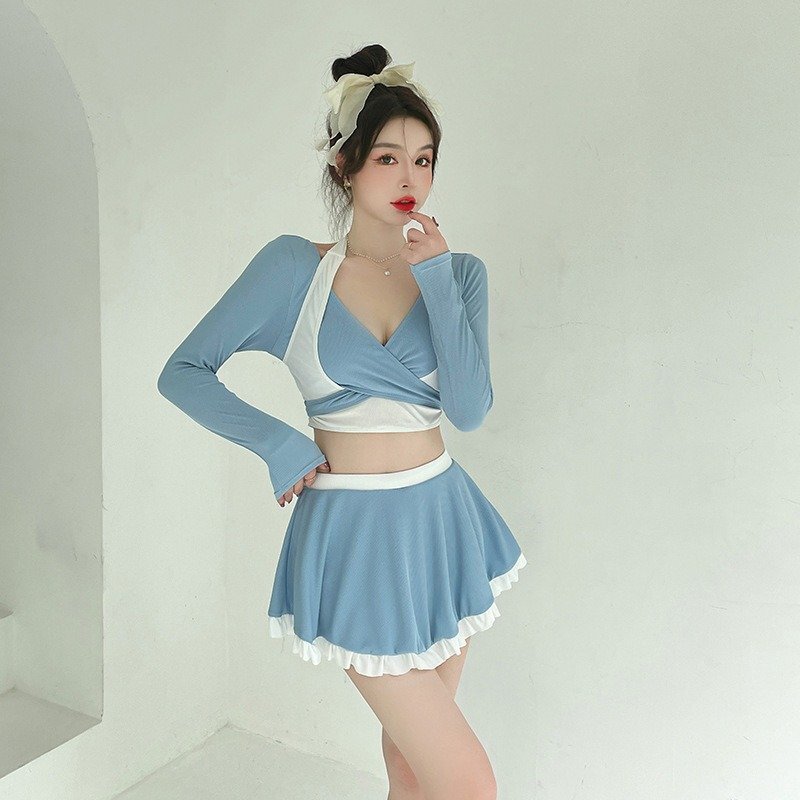 大活躍 水着 レディース 2点セット 長袖 体型カバー おしゃれ ロングスリーブ水着 セット水着 ビキニ ママ水着 海 コスプレ L ブルー