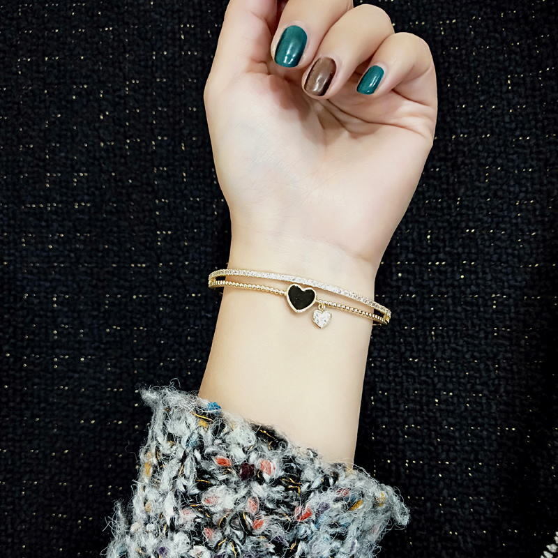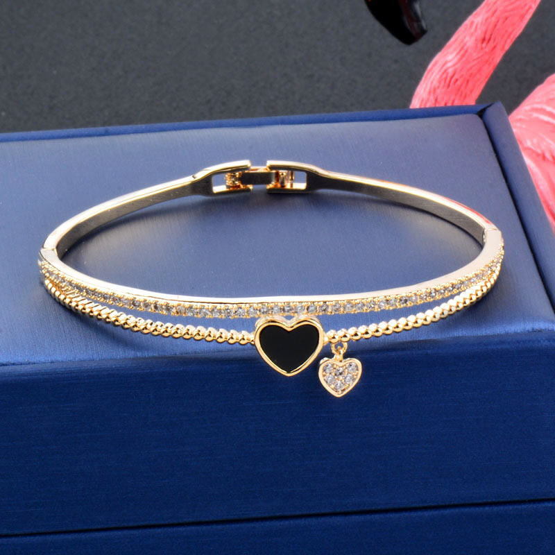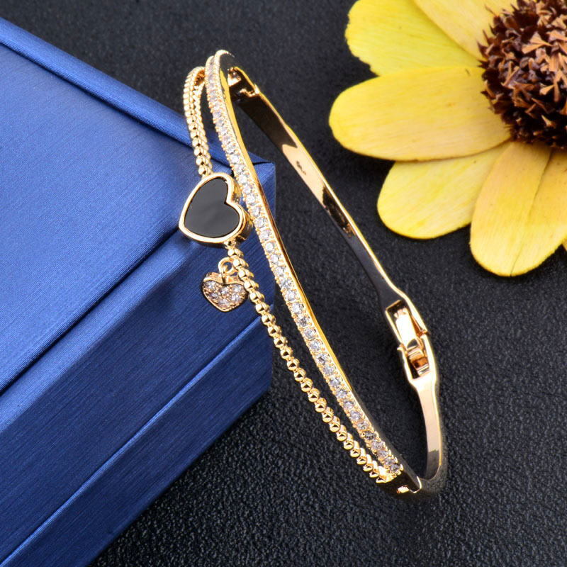 ゴールドとczダイヤとラインストーン装飾の2つのハート★k18メッキ加工バングル