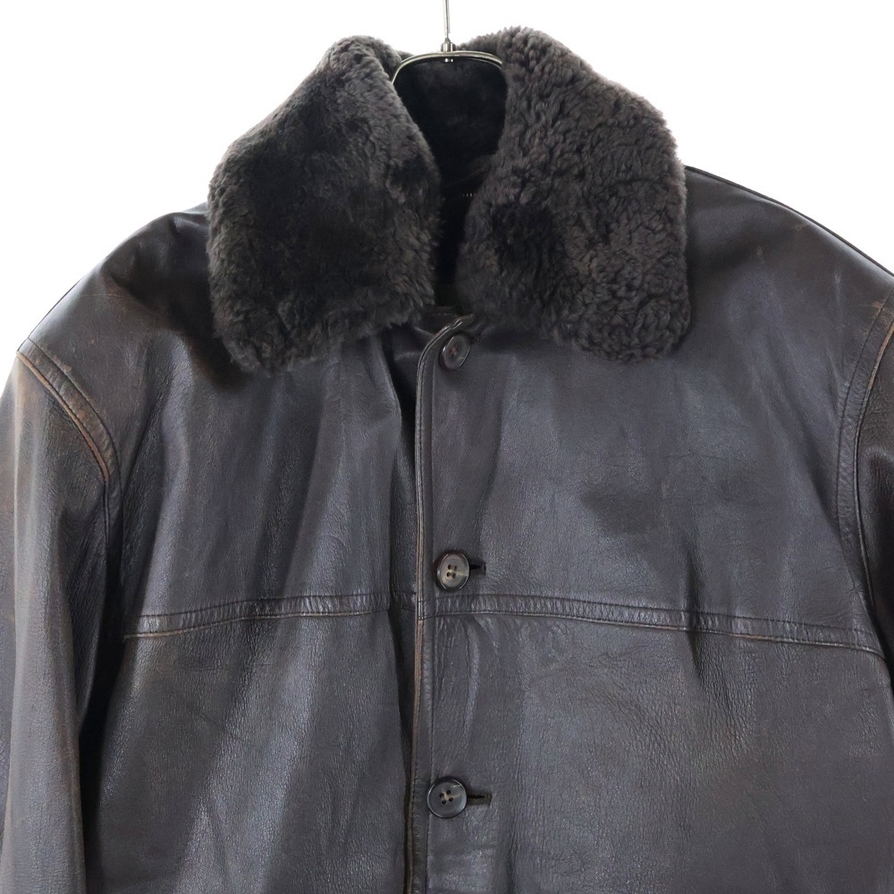 品名デタッチャブル ボア ライナー付き ラムスキン レザー ジャケット ブラウン PS-5040