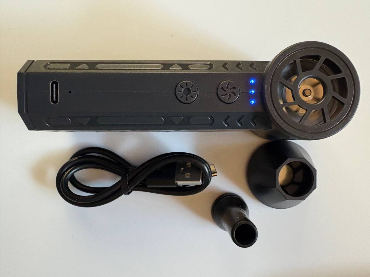 コンパクトでパワフル、USB充電で使い捨て缶ダスターには戻れません。風量は3段階切替え、掃除用以外でもキャンプの着火やアタッチメントノズルを外せば屋外でヘアドライヤーや強力なハンディファンとしてもお使い頂けます。