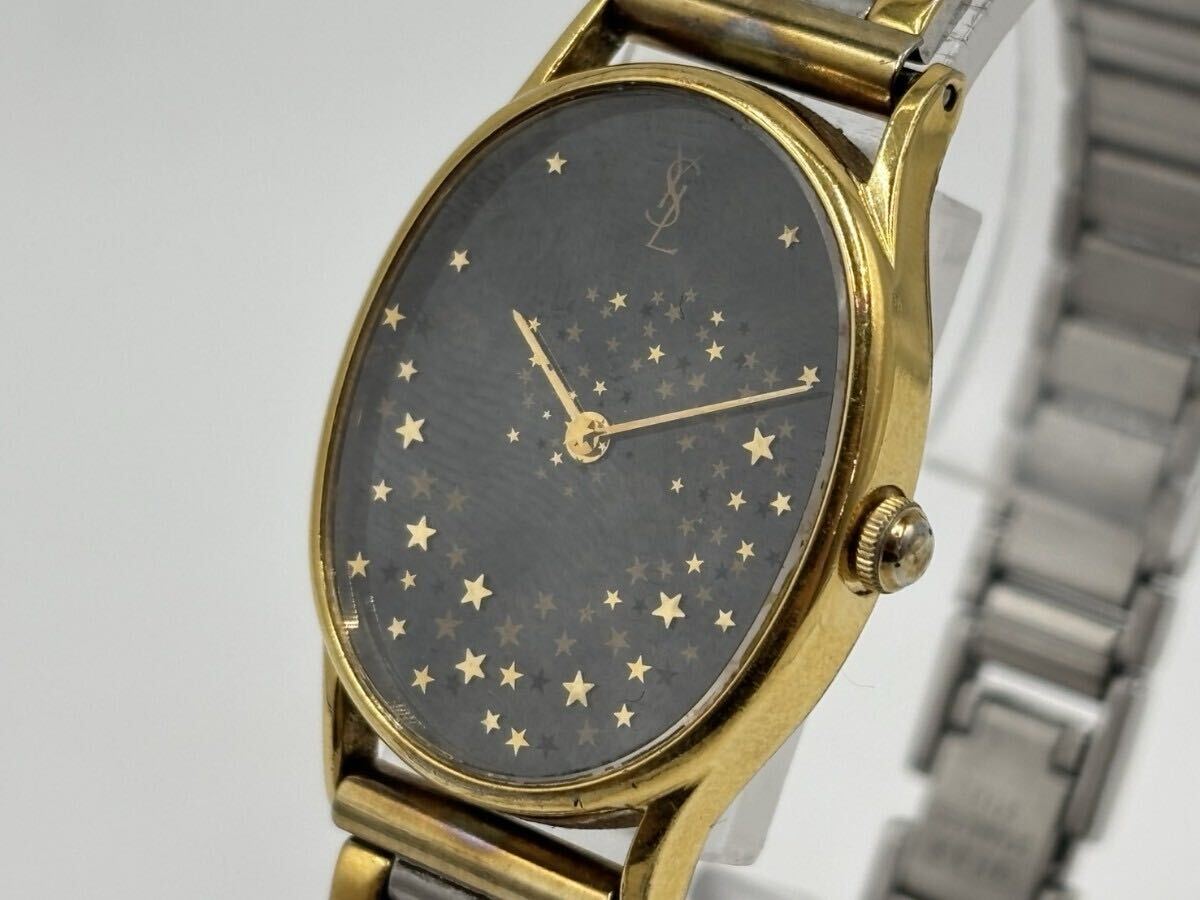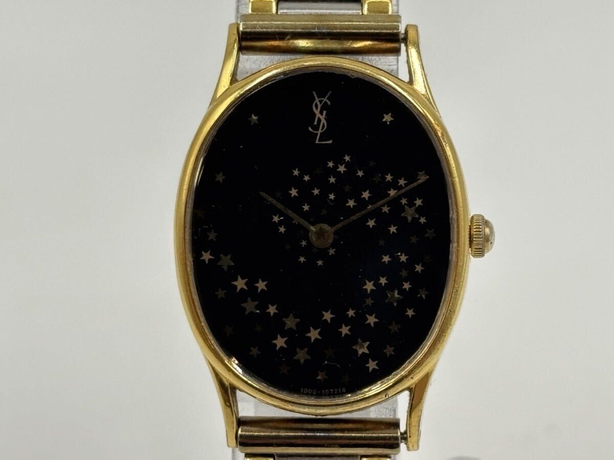 YVES SAINT LAURENT イヴ サンローラン レディース腕時計 4-106385S 黒文字盤 クオーツ 2針 稼働 電池交換済み 現状品 中古 | ||||||||||||||||||||