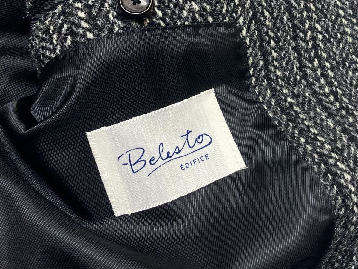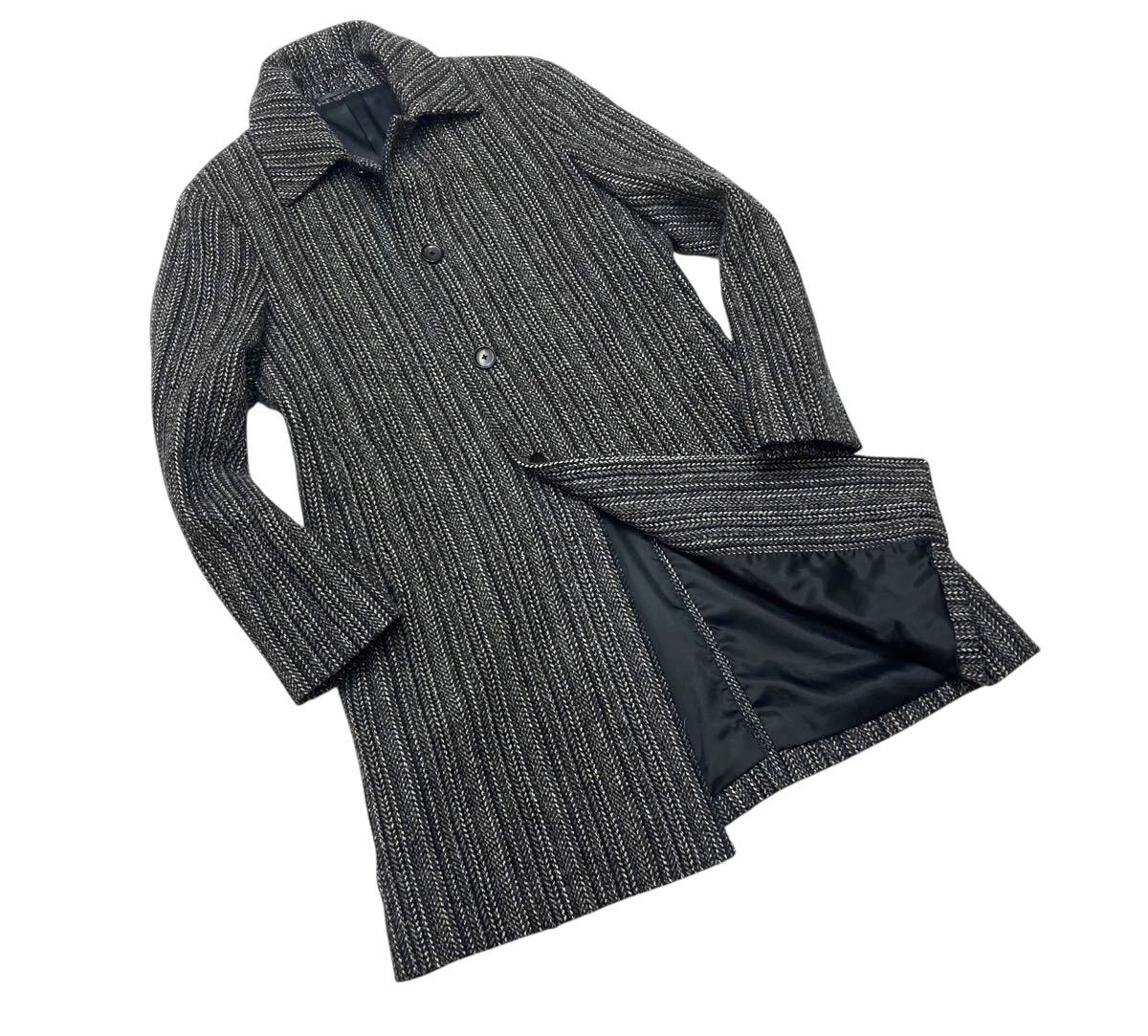 【未使用級】定価7.5万円 エディフィス Belesto 英国「ハリスツイード」ステンカラーコート/44 L程度 チャコー Harris Tweed