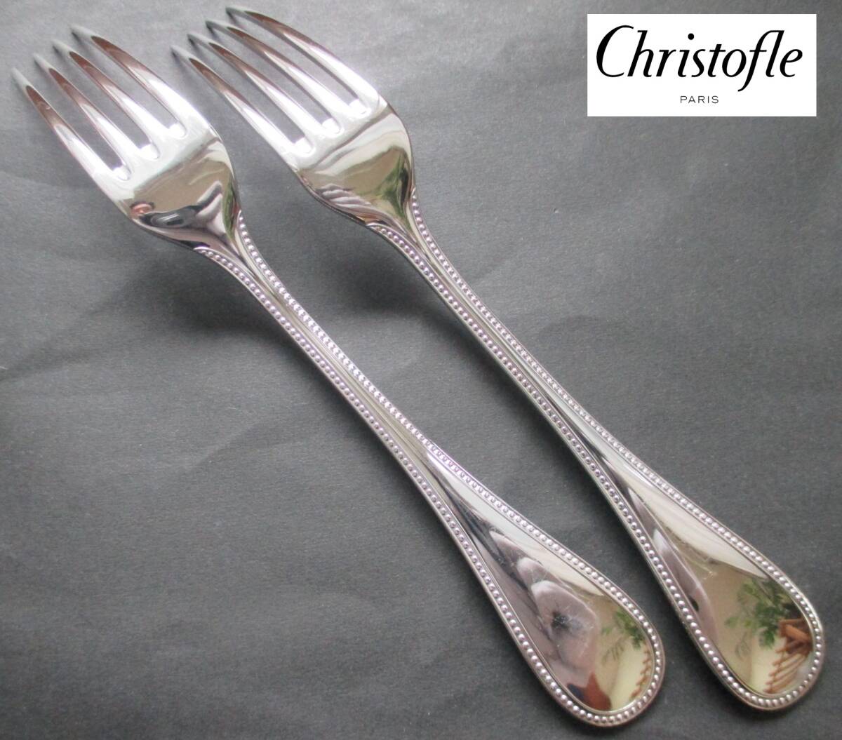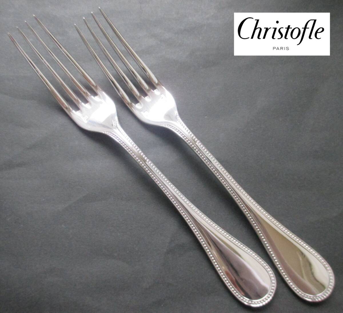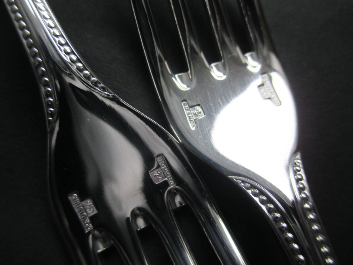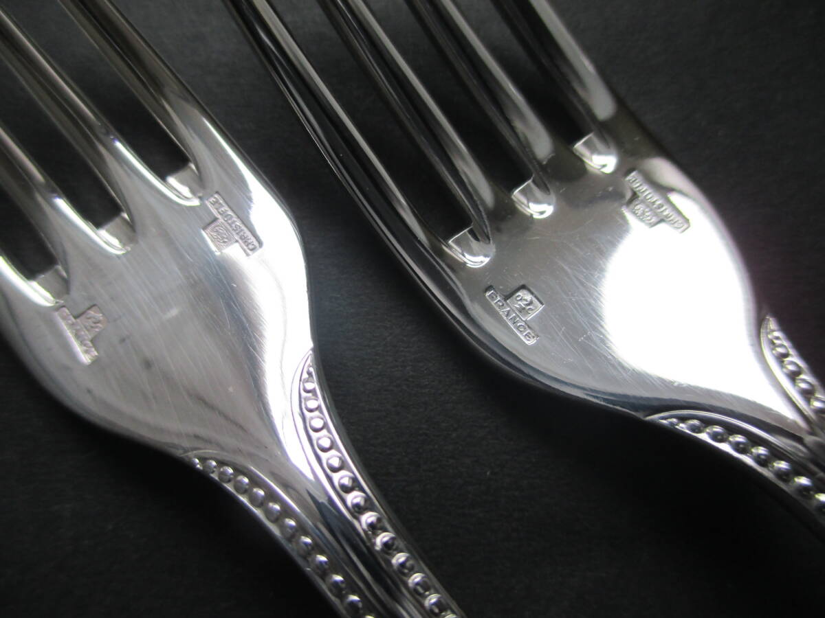 ☆仏蘭西 高級銀器☆美品☆クリストフルシルバーChristofle製 銀P デザートフォーク2本 シリーズ:定番のパール  (参考新品定価330,000円相当)