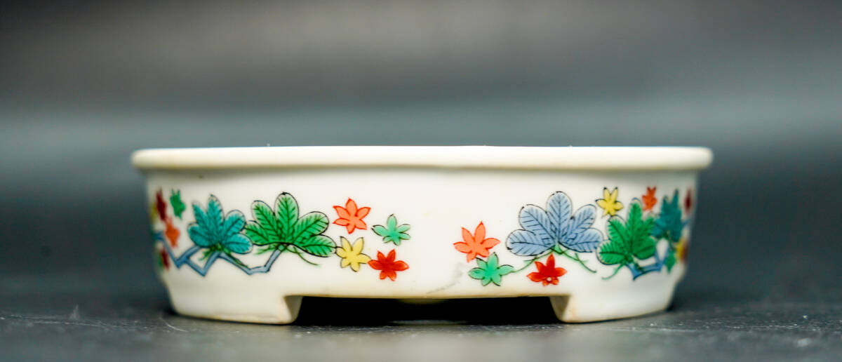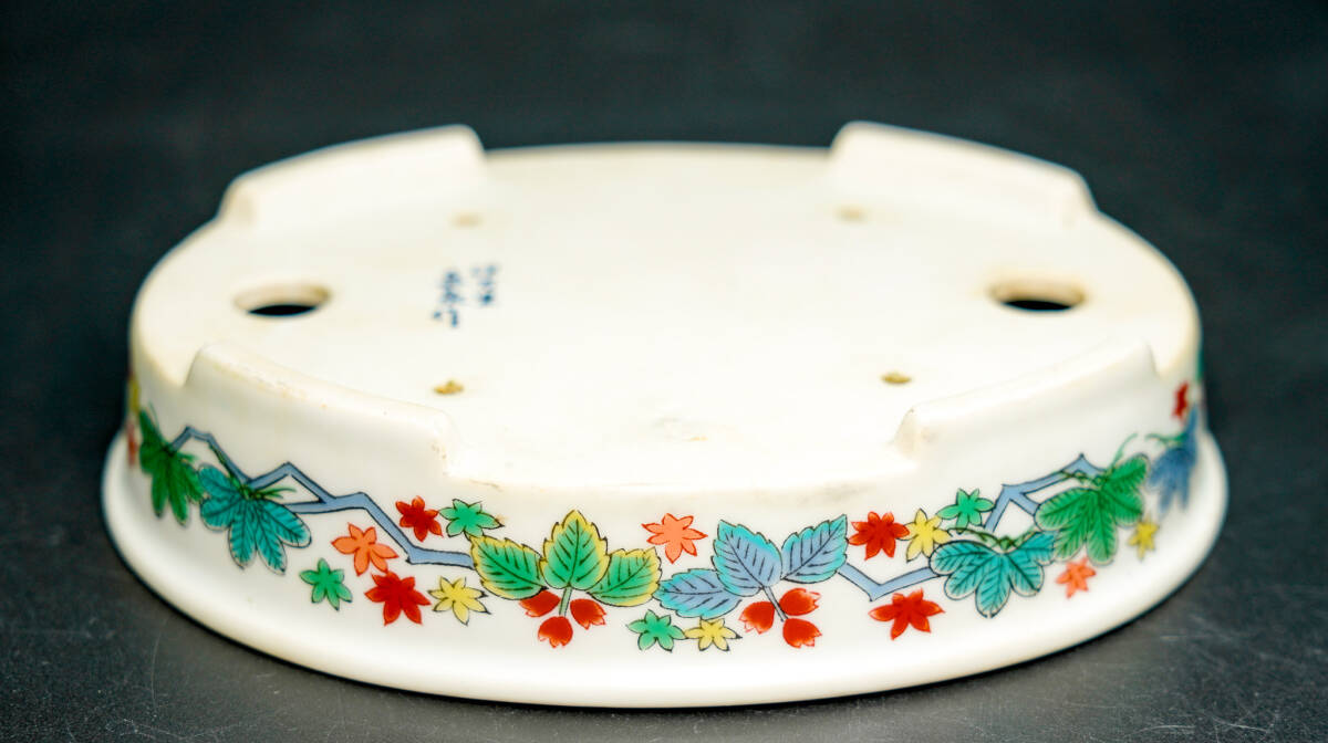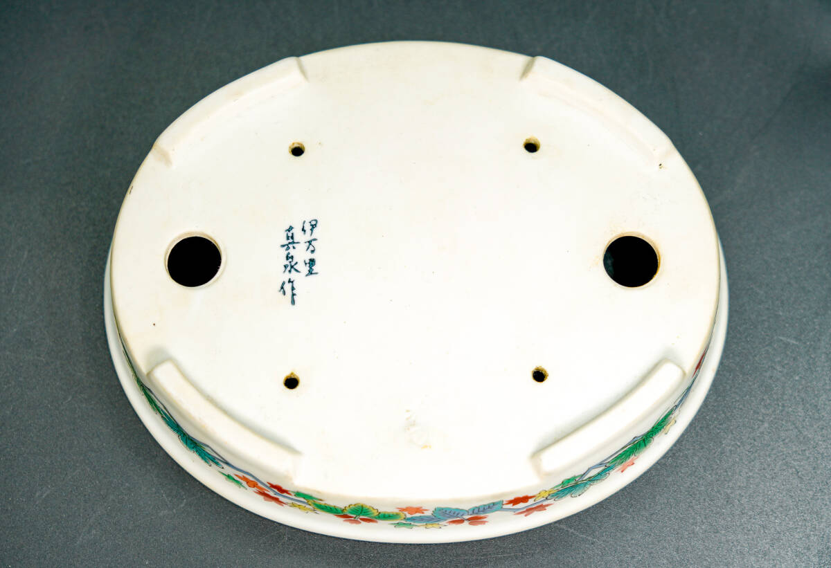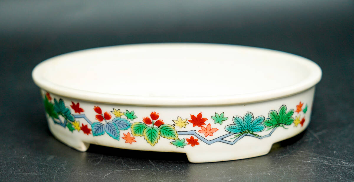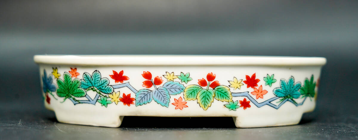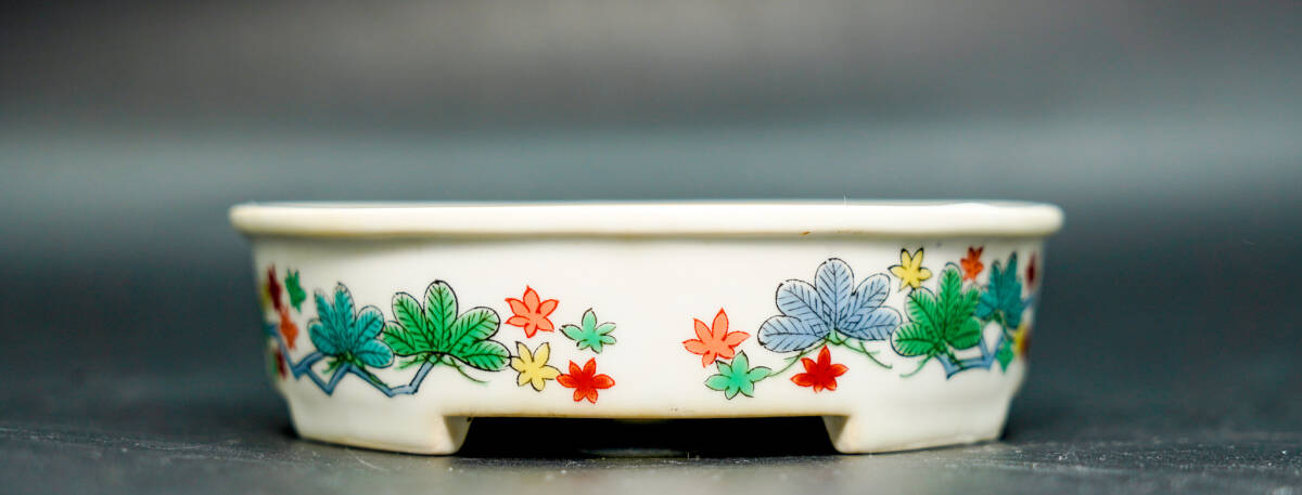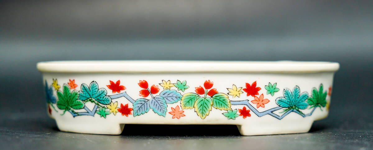 【翠】伊万里 真泉作 色絵 紅葉図 楕円鉢【盆栽鉢】