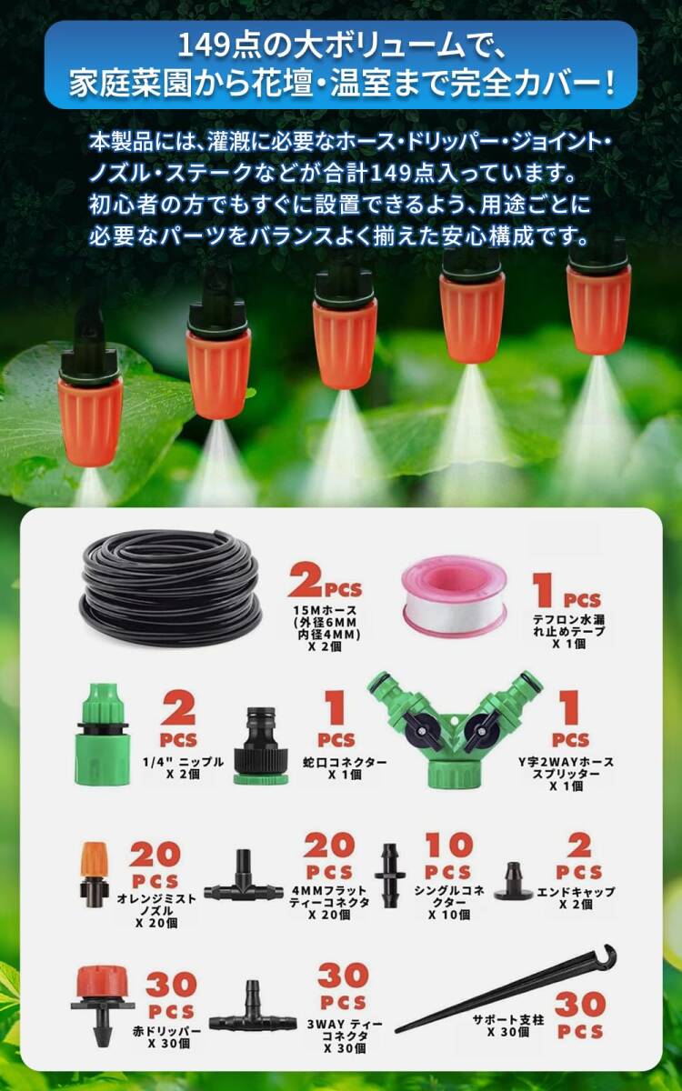 園芸 149個セット 散水用具 給水 畑 点滴 散水ホース 農業 灌漑 噴霧ノズル 灌漑システム ガーデン 自動散水セット PLE