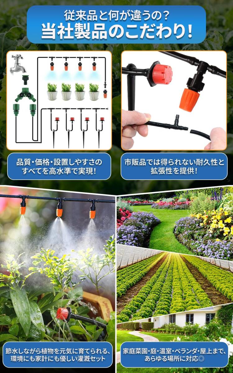 【多彩なシーンに対応、庭の灌漑が進化!】この灌漑システムセットは、霧化、芝生灌漑、テラス、花園、野菜灌漑、屋上冷却、農業、野菜、温室、花壇、プール霧冷却灌漑など、さまざまな用途に適しています。一台であらゆる灌漑ニーズを叶えます!