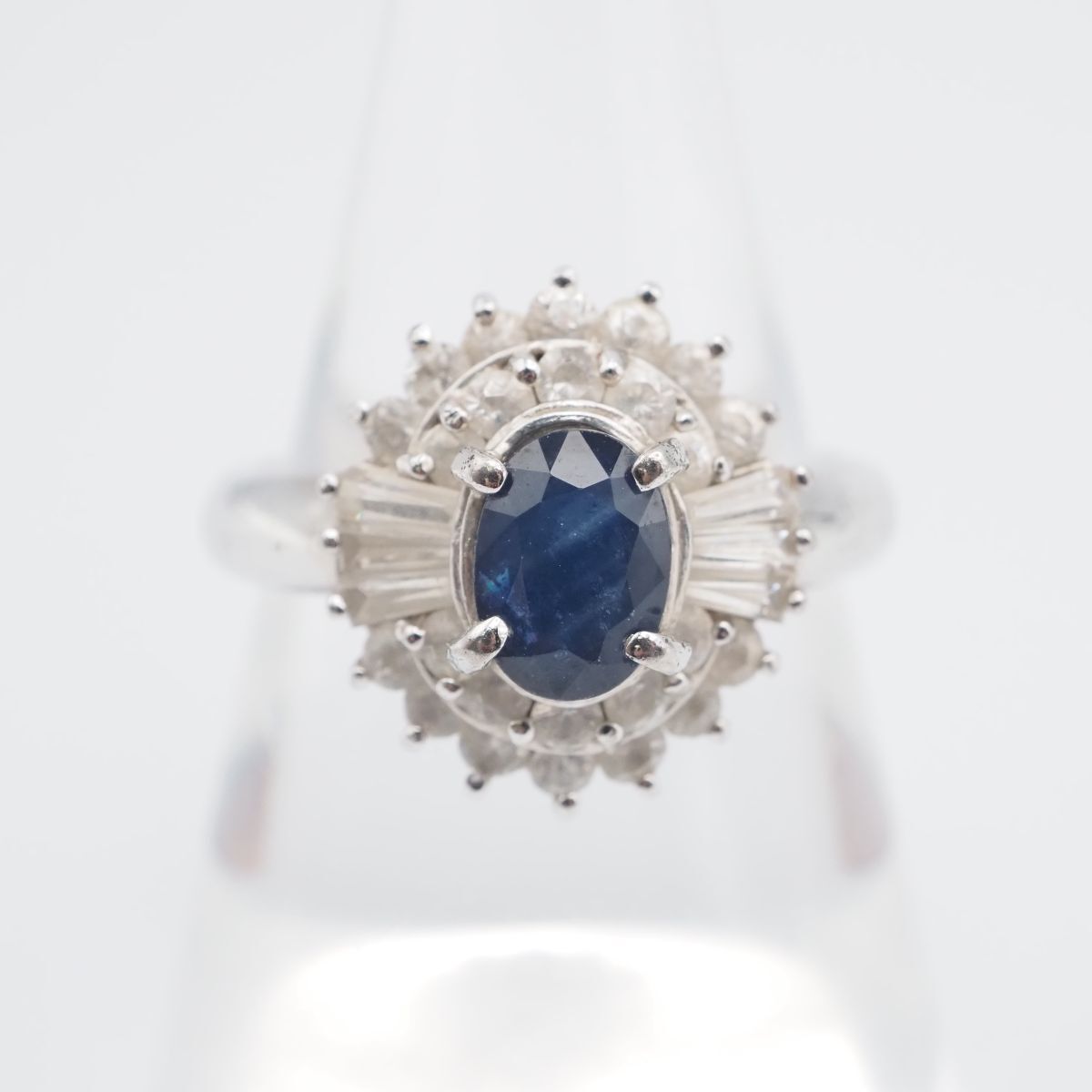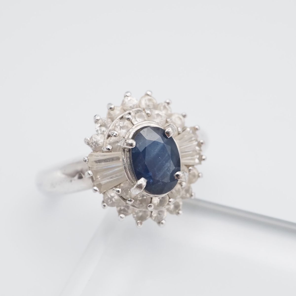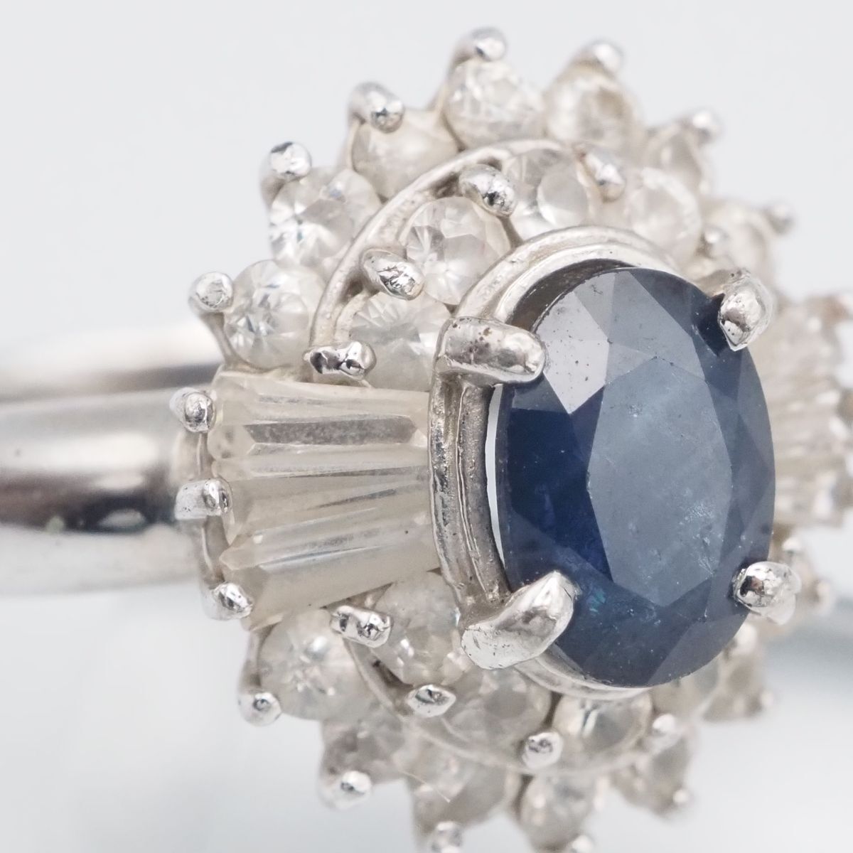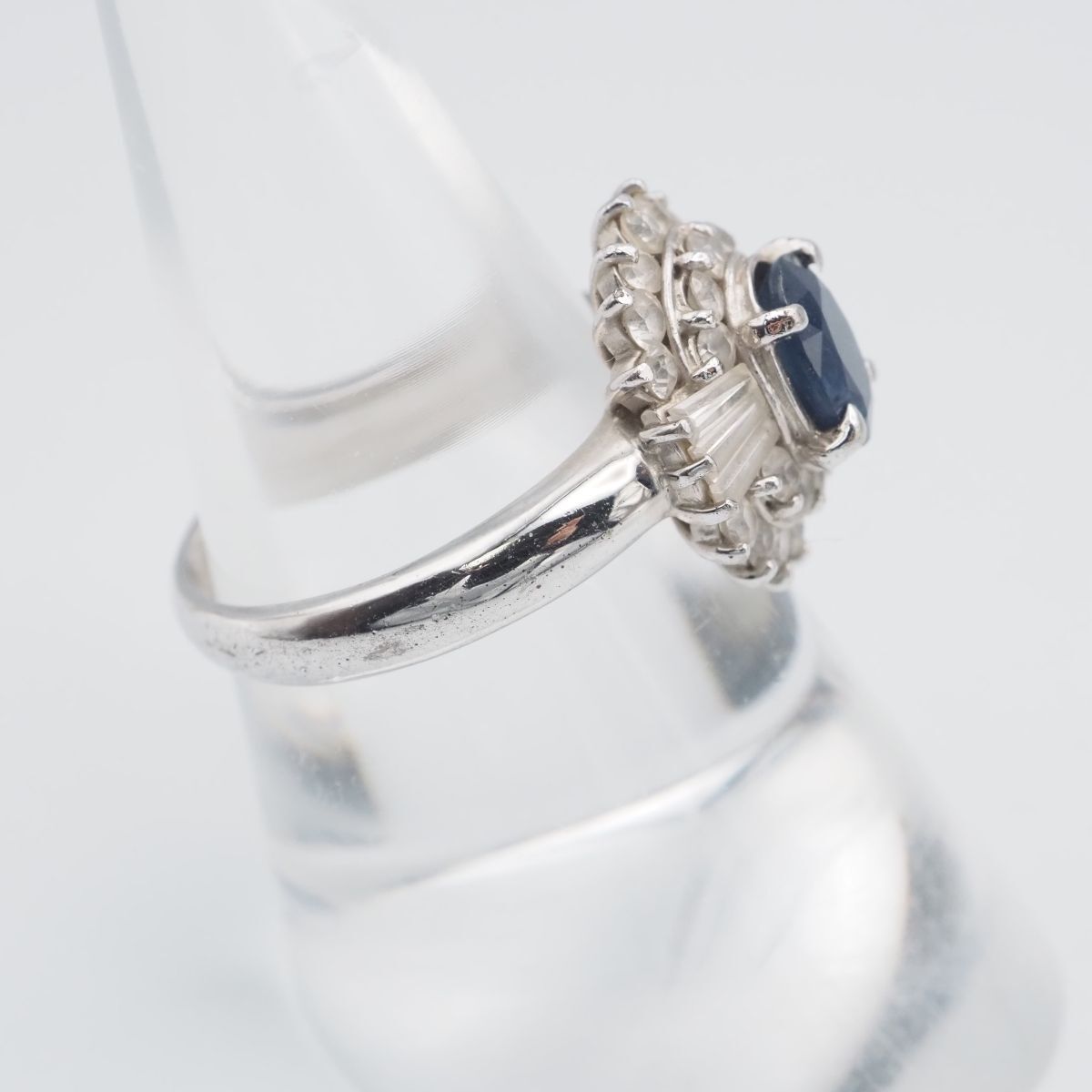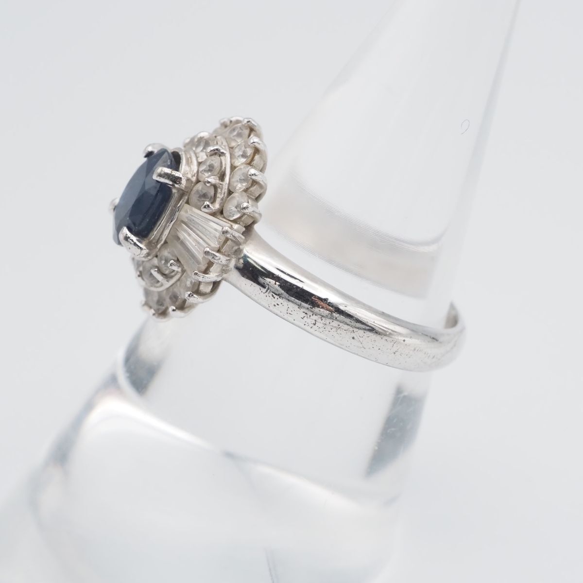 F863 サファイア? ブルースピネル? SV S100刻印 リング ラインストーン デザイン シルバー 指輪 14号