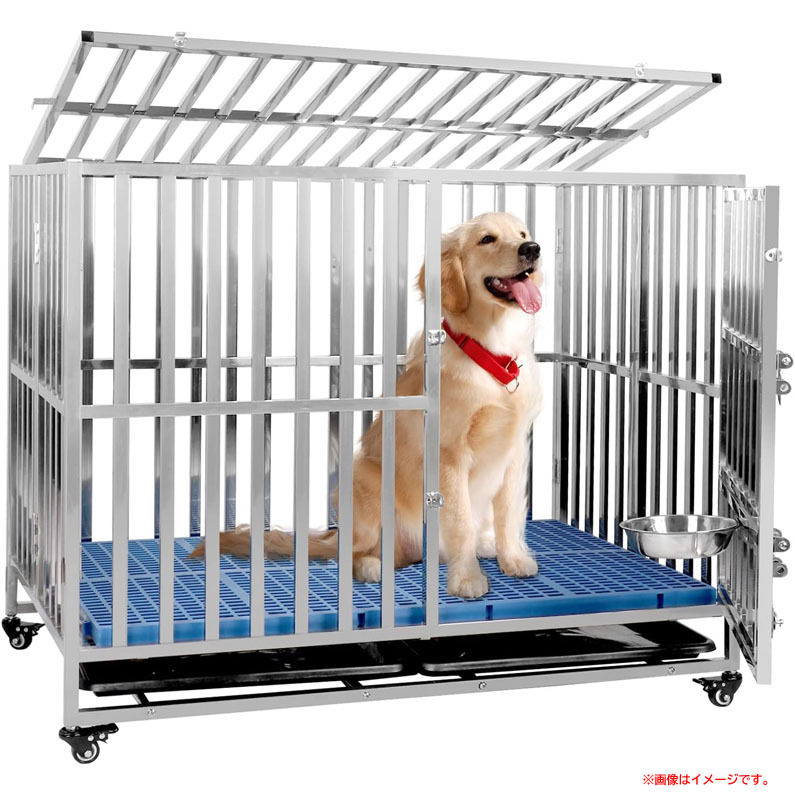 【商品特長】 ◆マット付き ソフトのプラスチック制のマット2枚が付属しているので、犬の前足が金属に直接触れる必要がなく、 足がとても楽に感じられます。 飼い主は、愛犬が手を挟む心配がありません。 ◆フードボウル付き 直径16.5cmの大きなフードボウルが付属しているので、愛犬はその中で食事をすることができます。 ケージ内にペットを入れておくことができるので、安心して外出できます。 ◆トレー付き 取り外し可能なトレイ2つが付属しているので、水洗いでき、お掃除もお手入れが簡単です。 ◆折りたたみ式 折りたたみ式なので、組み立ても設置も簡単です。 広げて底面のパーツを入れるだけで、すぐに使えます。 ◆ロック式とホイール付き 4つの高品質なキャスターが付いているので、室内から室外への移動や部屋の掃除をするときなどに簡単に移動可能です。 ◆前面のドア 天井と前面にも大きなドアがあるダブルドアの仕様で、飼い主がペットに餌やりやペットとの触れ合いがしやすくなります。 |