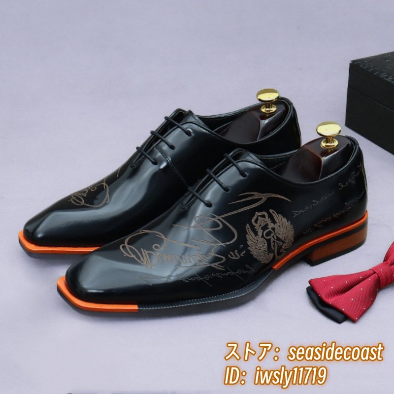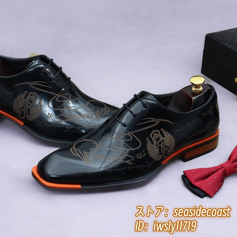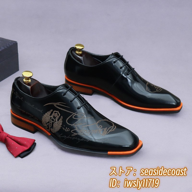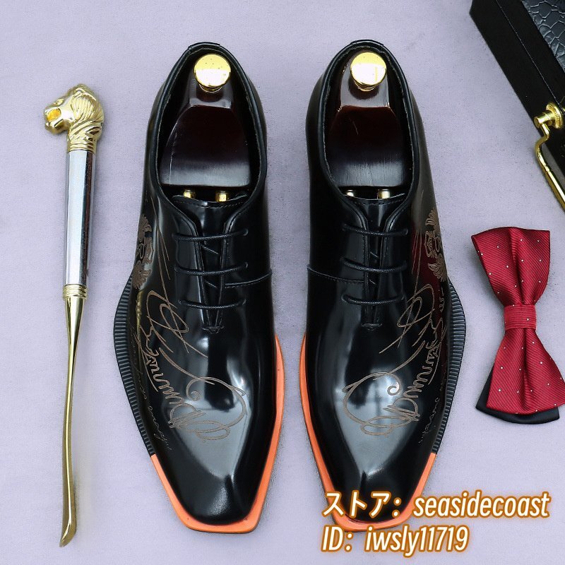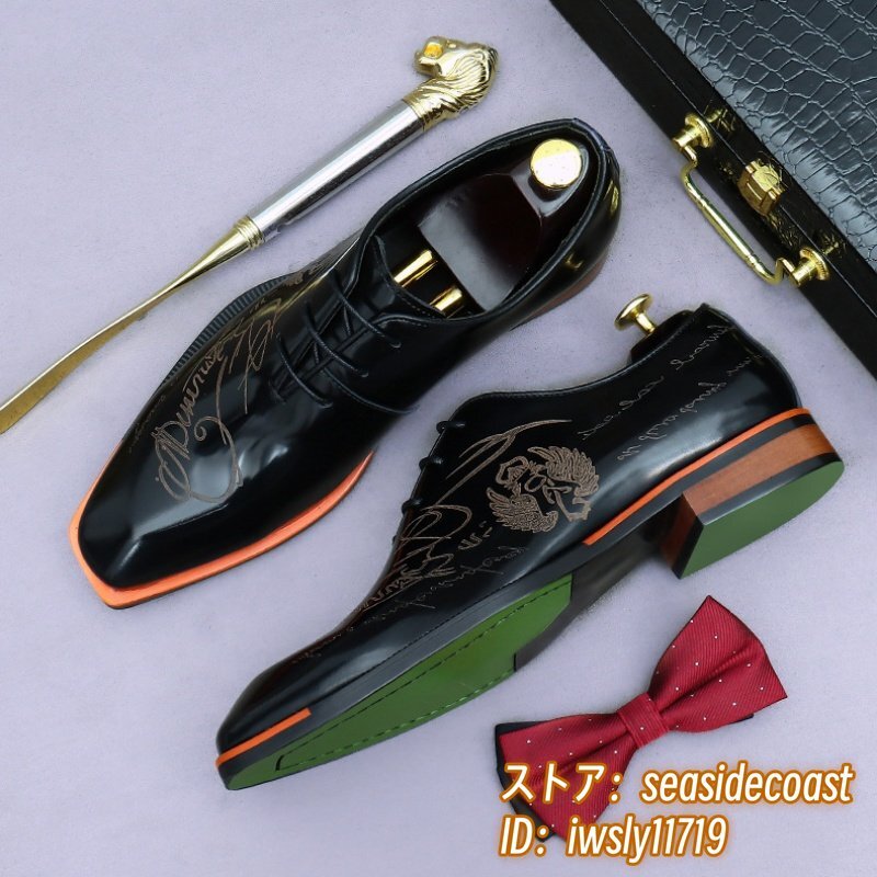 最高級◆定価11万 メンズ レザーシューズ 本革 ビジネスシューズ 革靴 フォーマル 職人手塗仕上げ 牛革 紳士靴 手作り新品 ブラック 24.5cm