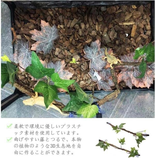 柔らかい人工藤素材で、好みの形に曲げて立体的な配置が可能。本物の植物のようなレイアウトが作れ、爬虫類が安心して登ったり隠れたりできます。