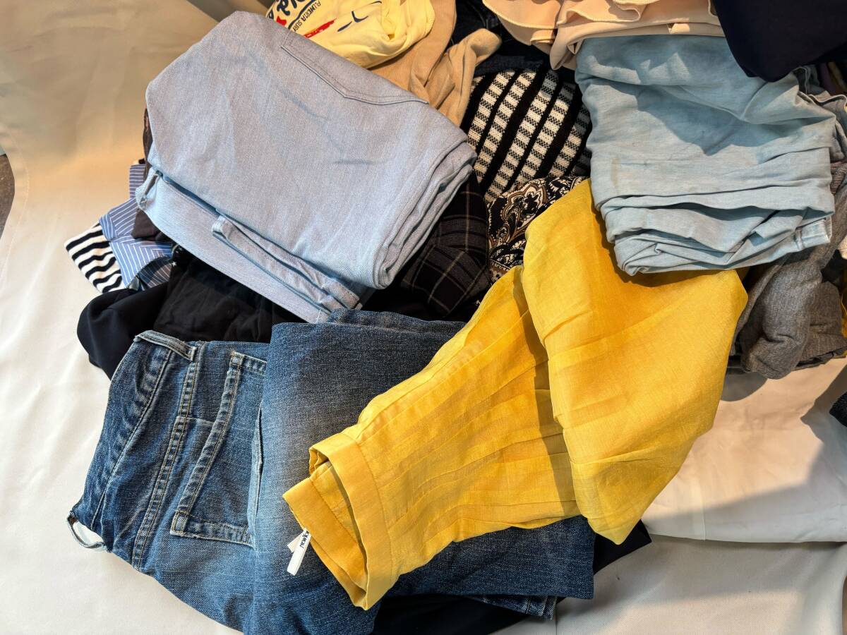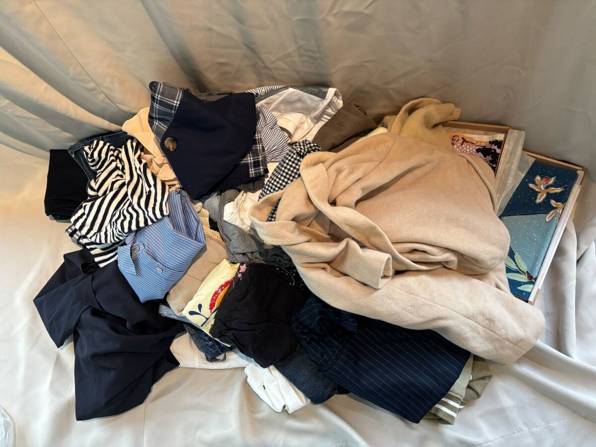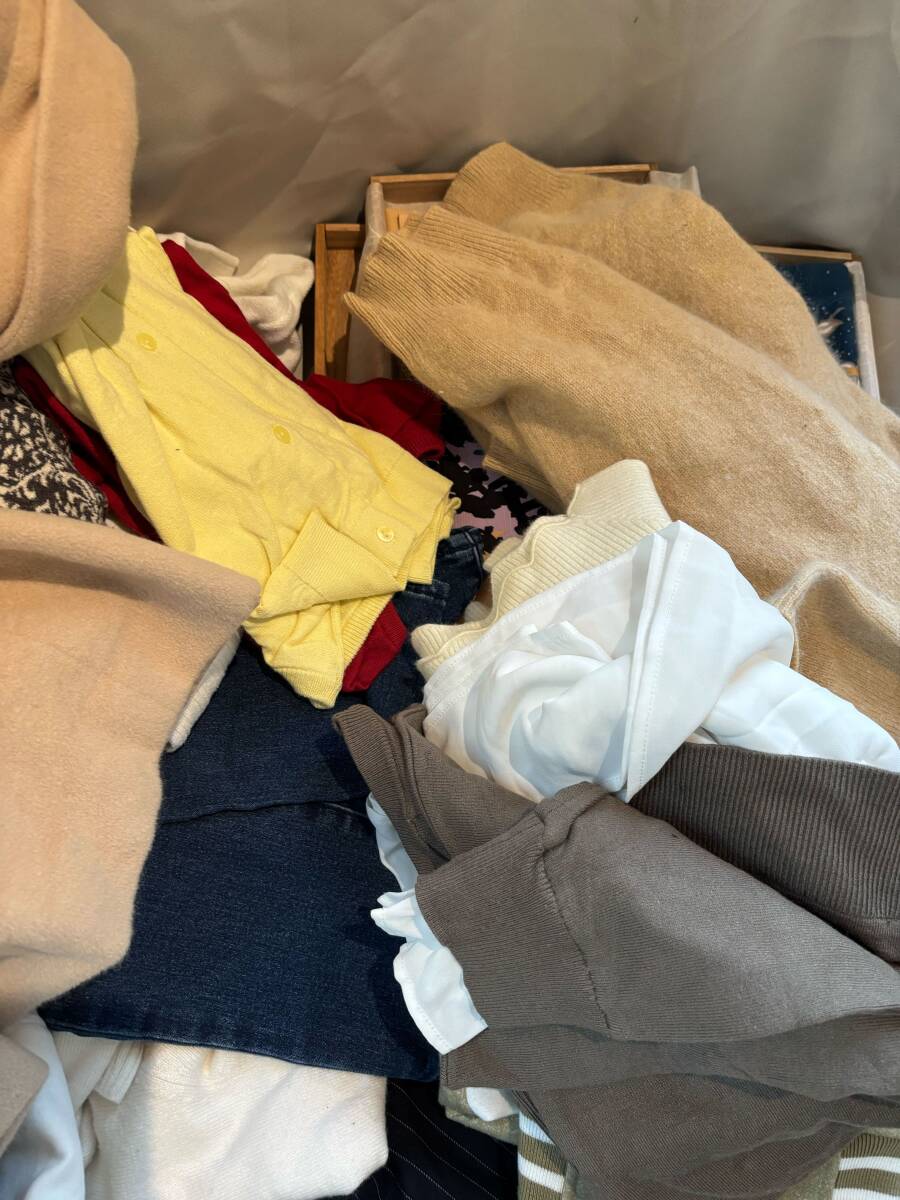 出品詳細:長期保管品。色々なタイプ、形、デザインのトップス、ボトムス等が入っています。