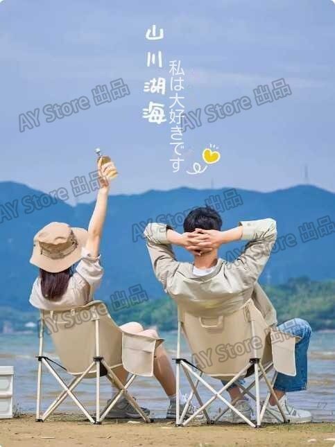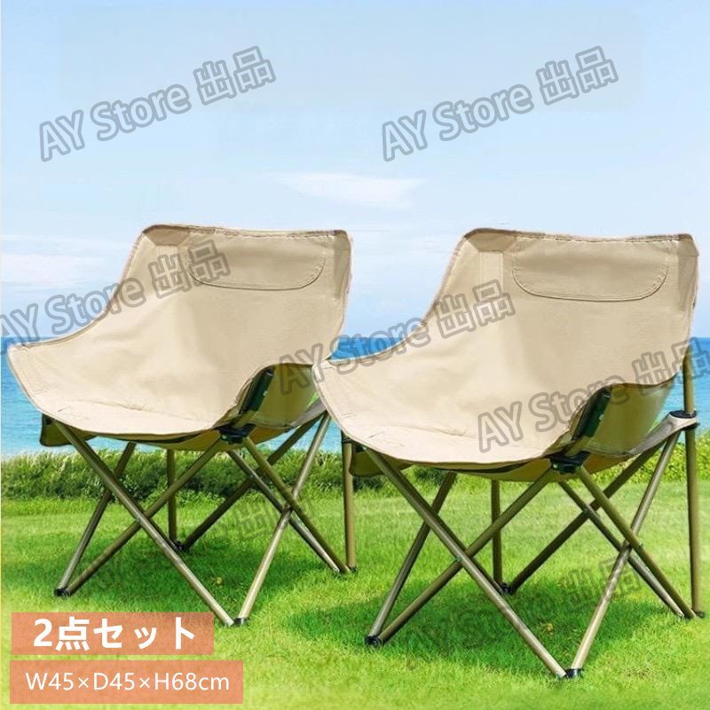 アウトドアムーンチェアキャンプ折りたたみ椅子ポータブルリクライニングチェア釣り椅子ビーチチェア昼休み神器シート(2点セット)bhw0294