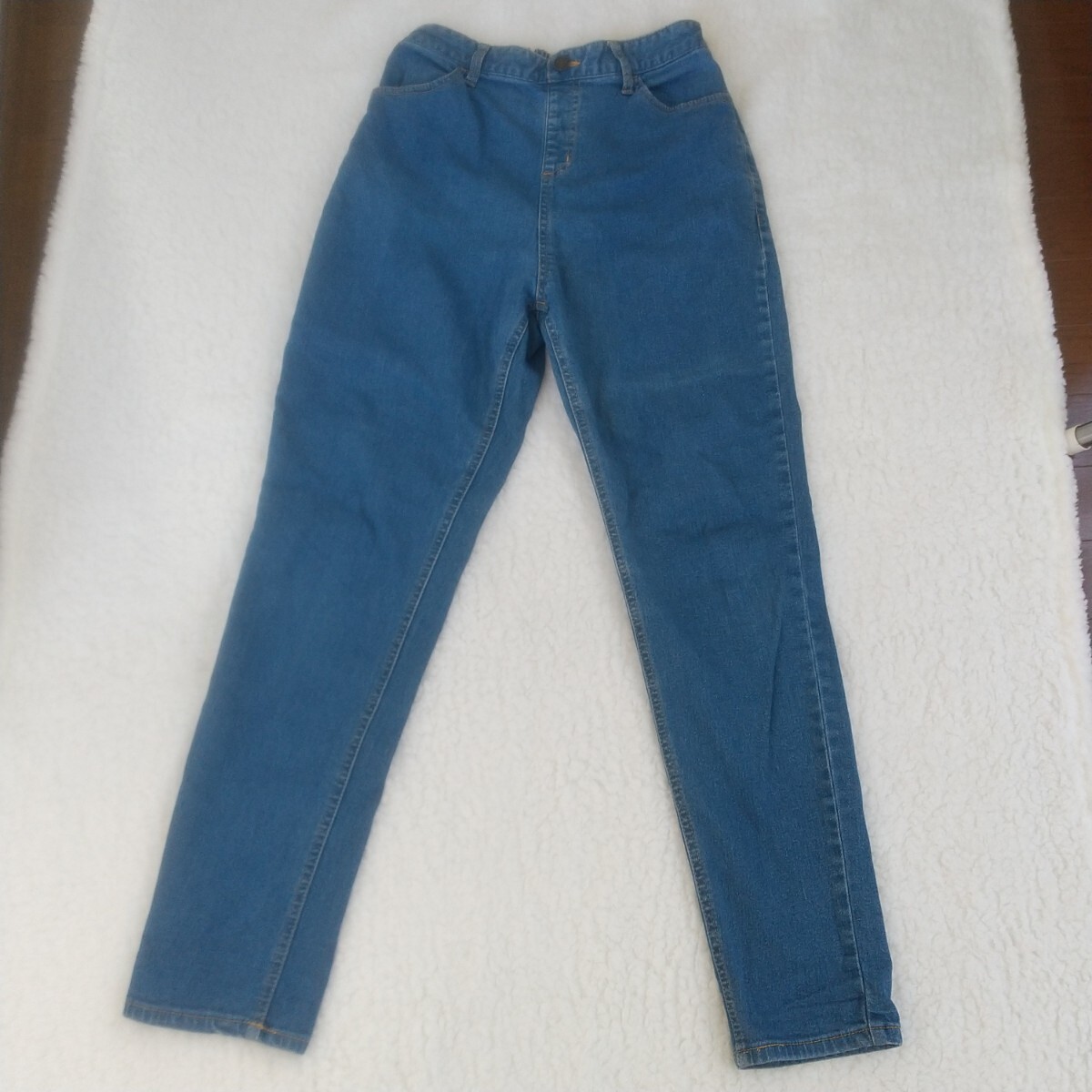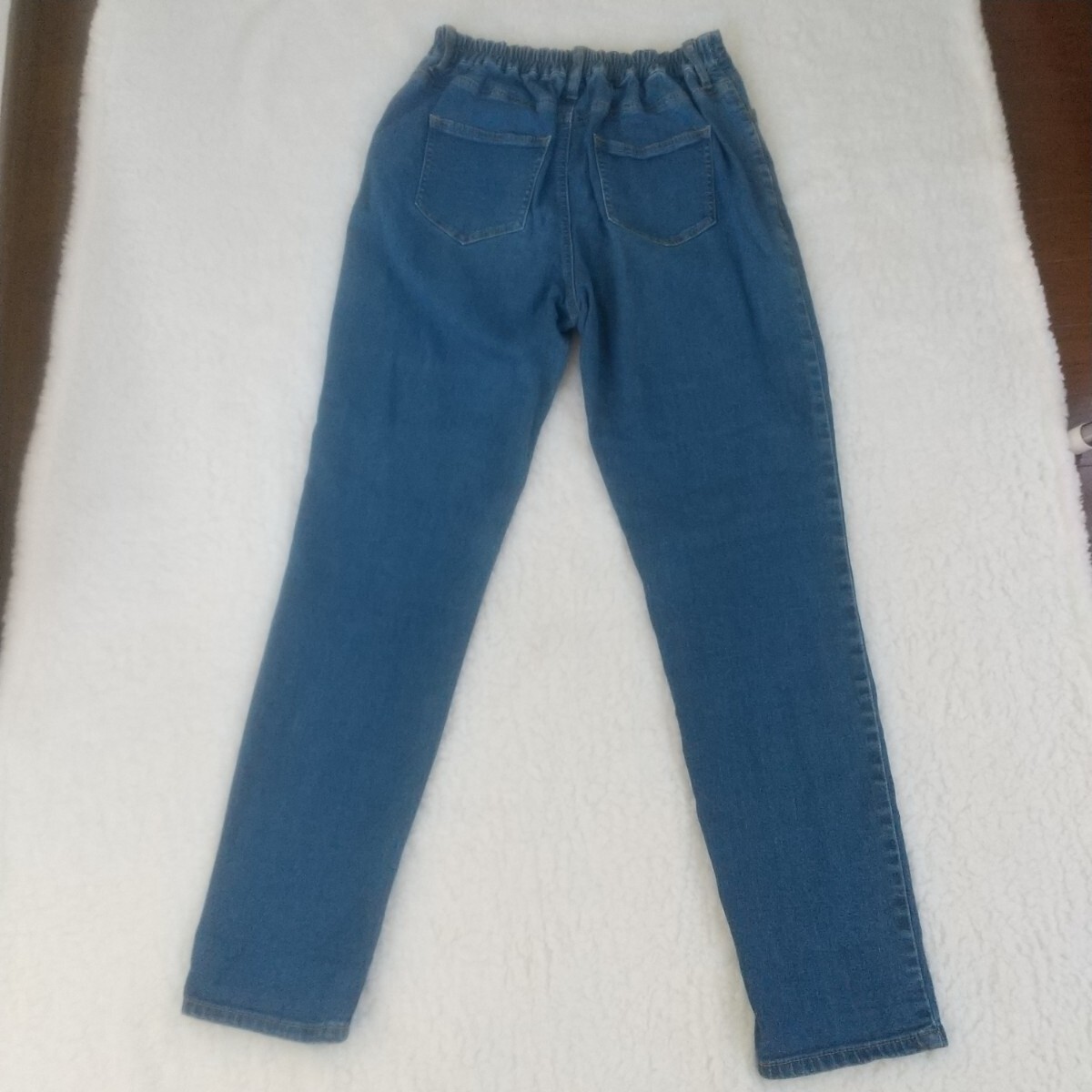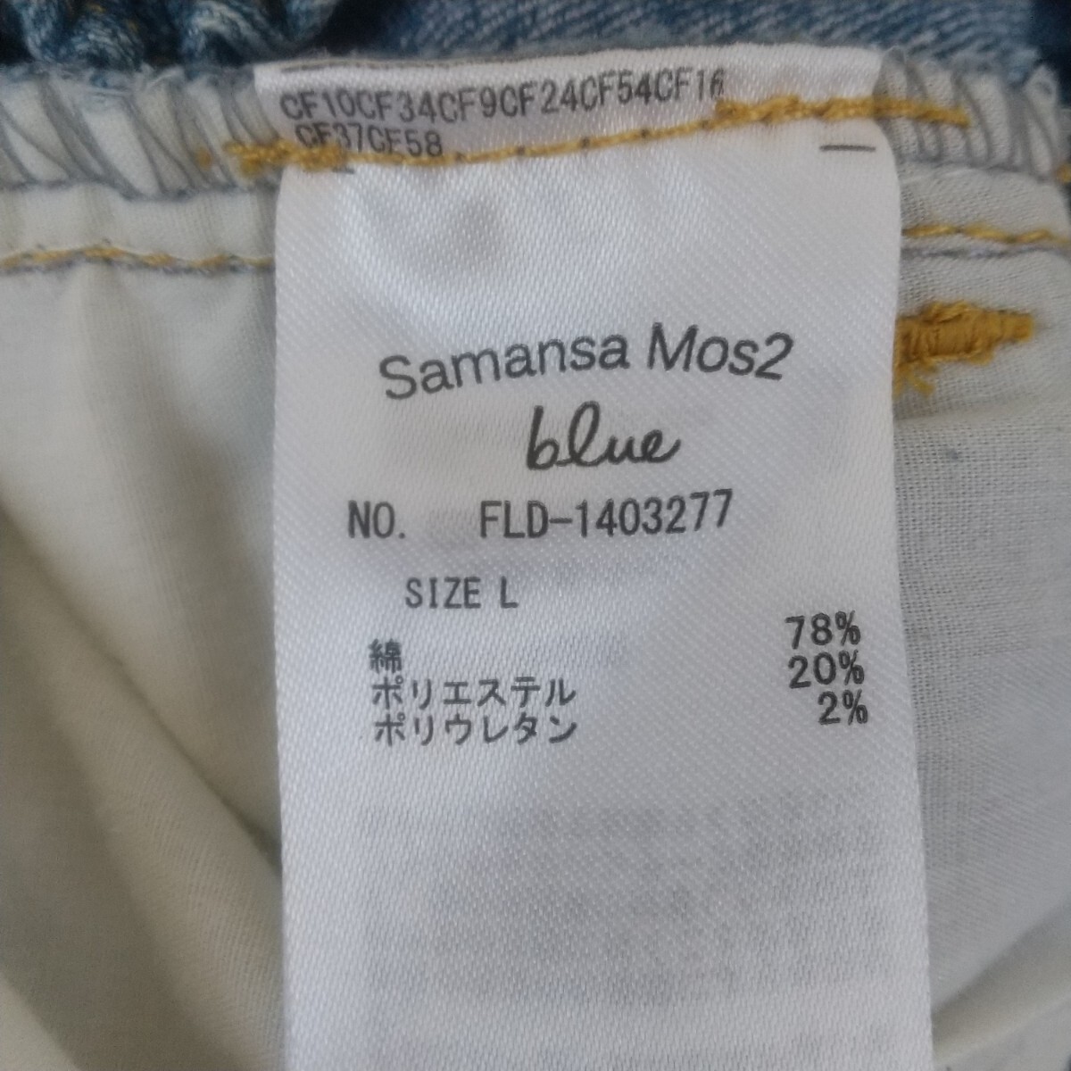 サマンサモスモスブルーのデニムジーンズLサイズです。ウエストがゴムなので履きやすいと思います。目立った傷,汚れ等はないと思いますが,見落とし等ありましたらご了承下さい。
