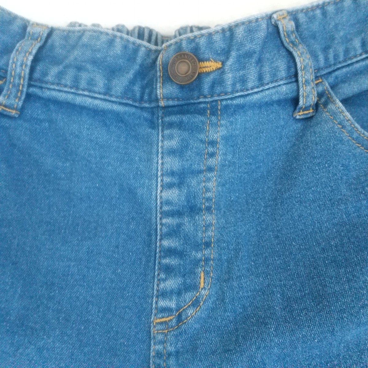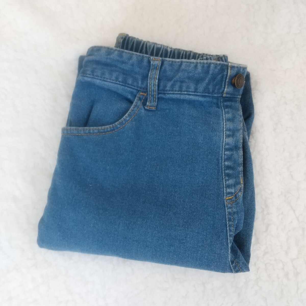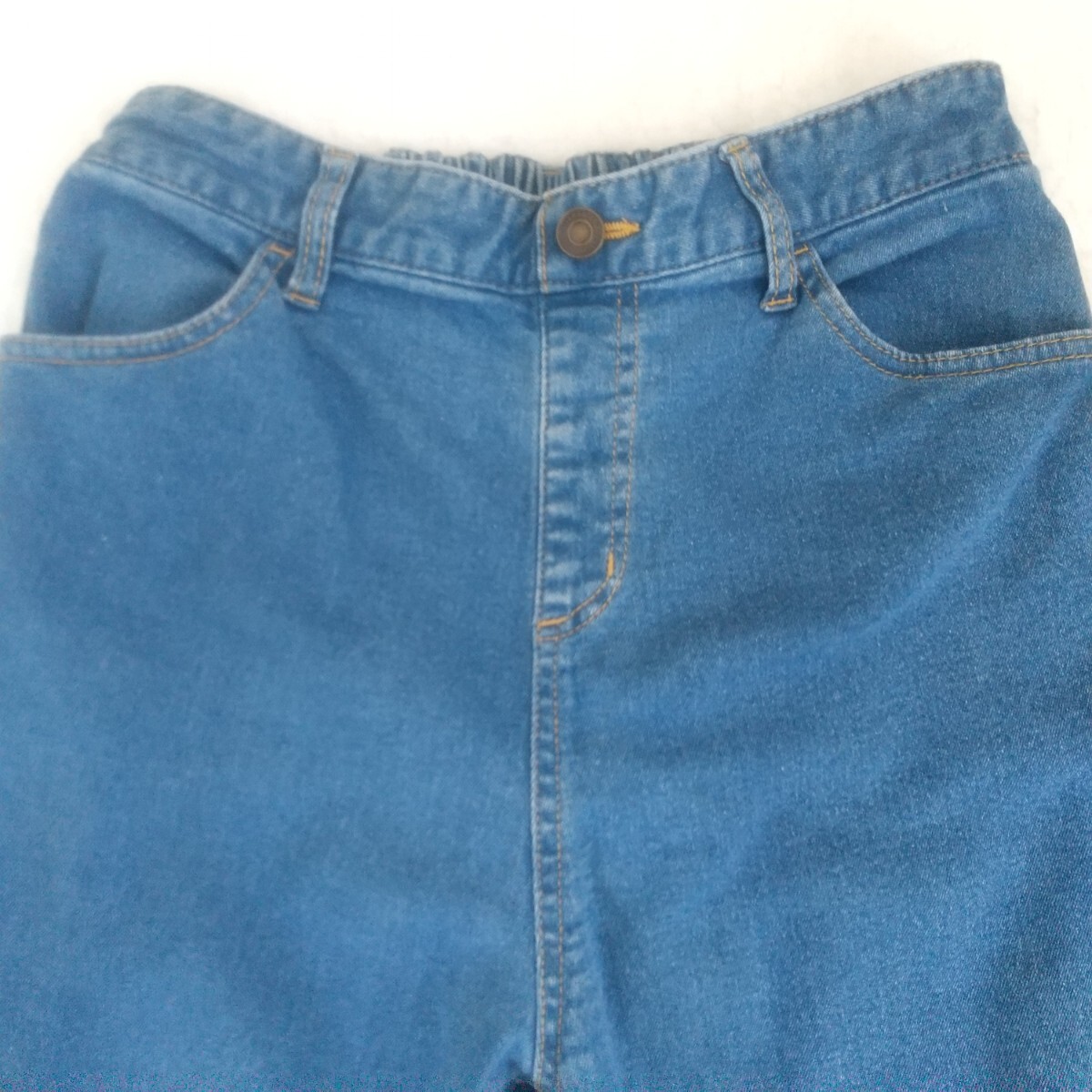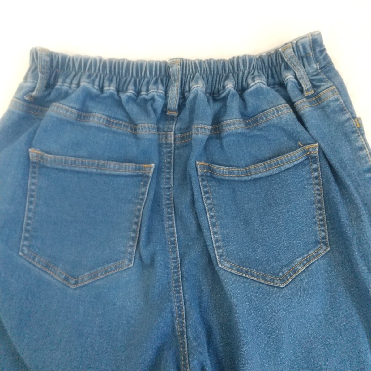 サマンサモスモスブルーのデニムジーンズLサイズです。ウエストがゴムなので履きやすいと思います。目立った傷,汚れ等はないと思いますが,見落とし等ありましたらご了承下さい。